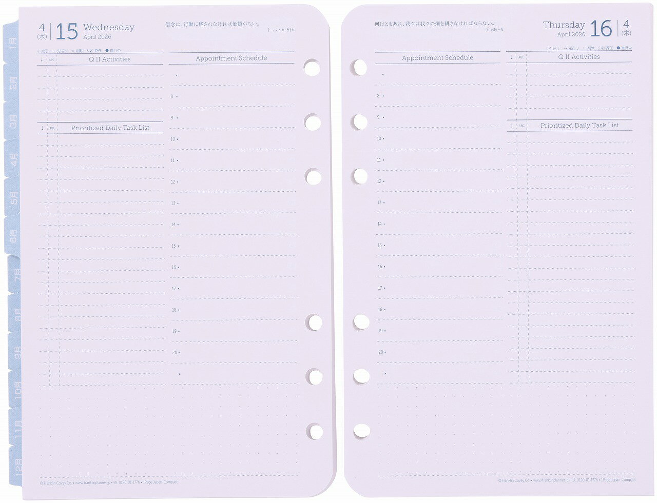 【公式】2026年1月始まり|1日1ページ・リフィル・キット|バインダー無し|日本語版12ヶ月【フランクリン・プランナー】