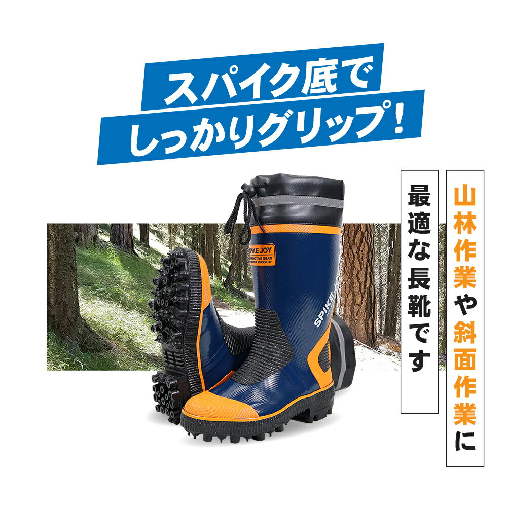 【ブラックフライデーP2倍&クーポン 】スパイク 滑りにくい 長靴 スパイク底 林業 メンズ スパイクジョイ#5 林業 釣り 川 海 斜面 山林作業 磯釣り 災害 山林用 登山 草刈り 斜面作業 農家 ロング カバー付き インソール付き ネイビー メーカー直販 福山ゴム 送料無料