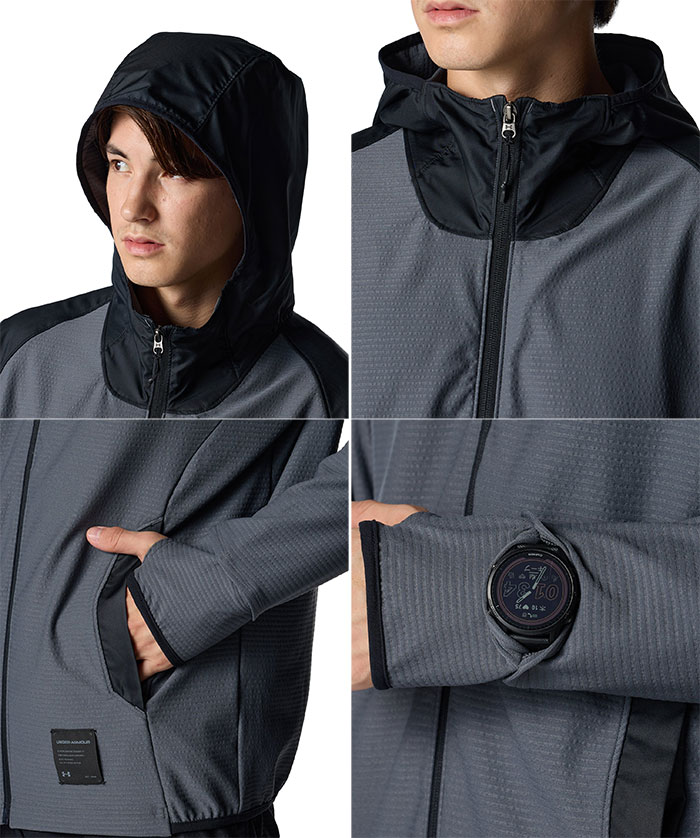 アンダーアーマー メンズ UAモチベート リブ ハイブリッド フーディー フィットネス トレーニングウェア トップス 長袖 ブルー 青 送料無料 UNDER ARMOUR 6007382