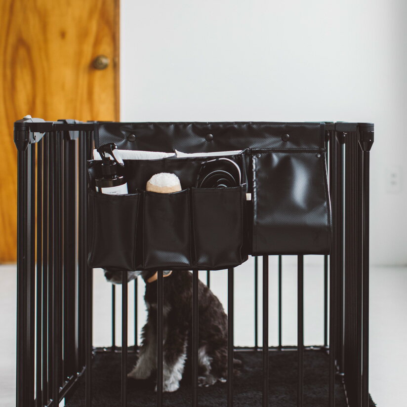 【犬 サークル】サークル サイド ストレージ バッグ ターポリン(ブラック)ケージ ゲージ 簡単 ドッグ犬用品 サークル スタイリッシュ インテリア 道具入れ お手入れ 用具入れ ドッグ ペット 掃除 ペーパーホルダー ティッシュ ケース