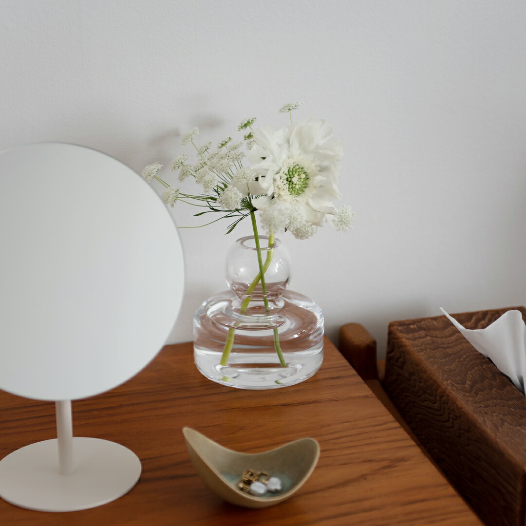 スウェーデン出身のガラス作家、カリーナ・セス・アンダーソン/Carina Seth Anderssonによるデザイン。口が狭いので一輪挿しでもしっかりと立ってくれます。カラーは「クリア」。 背の高くないコロンとしたフォルムは食卓にも飾りやすく、器との相性も抜群です。カラーは「ラベンダーオパール」。 ピンクがかった乳白色のやさしい「パウダー」は、置くだけでお部屋の雰囲気をやわらかくしてくれます。ドライフラワーを生けても様になります。 「オリーブオパール」は落ち着いたグリーンがリビングにスッと馴染み、凛とした佇まいが魅力。 しっかりと花が立ち、初心者でも生けやすい絶妙なかたちです。カラーは「クリア」。 マリメッコと花のある暮らし 始めてみませんか フラワー(マリメッコ/marimekko) 「マリメッコ/marimekko」から、ぷっくりしたフォルムの愛らしいフラワーベースが届きました。デザインは、国際的な評価も高いスウェーデン出身のガラス作家、カリーナ・セス・アンダーソン/Carina Seth Andersson。当店でも取り扱いのあるスクルーフ社のコロンベースなどを手掛けたデザイナーです。 「FLOWER」は一見、個性的な形ですが、小ぶりで口がすぼまった、実はとっても飾りやすいフラワーベースです。1輪挿しのように、ちょこんと1本生けるだけでも様になりますし、庭で摘んだ草花をパサッと束で生けるのもおすすめです。低重心で安定感があり、中央には砂時計のようなくびれがあることで、花がしっかり立ち、誰でも簡単に花を生けることができます。窓辺や食卓、棚など、ちょっとしたスペースに気軽に飾れるサイズ感も魅力。花のある生活を始めたい方におすすめのアイテムです。 ミニマルで洗練された雰囲気のクリアは、花の茎まで美しく見せてくれますし、乳白色のタイプは内側が見えにくいカラーなので水垢汚れが気にならないのもいいですね。オブジェのように雑貨と並べたり、色の組み合わせを楽しんだり。ただ置いておくだけでも部屋をスタイリッシュに演出してくれます。気負わず花を楽しめるマリメッコのフラワーベース、"植物のある暮らし"の最初の一つに迎えてみませんか。 商品詳細 手に持ったときのサイズ感。 真上から見た様子。 底の様子。 全体の様子。表面にツヤがあります。 底には「マリメッコ/marimekko」のロゴが入っています。 箱の側面。パッケージデザインは予告なく変更になる場合がございます。 ブランド マリメッコ/marimekko(フィンランド) デザイナー カリーナ・セス・アンダーソン/Carina Seth Andersson サイズ 約φ10xH10.5cm(口径φ2.6cm) 重量 約270g 素材 ガラス 製造国 タイ 備考 ・職人が手作業で色をつけているため、色味や質感に多少の違いが生じることがあります。 ・製品によっては、製造工程で生じた極小の黒点や小さなキズが見られる場合があります。 ・パッケージデザインは予告なく変更になる場合がございます。 ブランド紹介 マリメッコ 1951年にフィンランドで設立された「マリメッコ/marimekko」。アルミ・ラティアが夫ヴィリヨ・ラティアのファブリックプリントの会社運営に携わり、「日々の生活を美しく過ごすため」のテキスタイルデザインを提案していく中で生まれました。 戦後の灰色の景色の中で、マリメッコらしい色彩やパターンは人々の暮らしを明るく照らす存在であったことでしょう。 その後「ウニッコ/Unikko」柄をデザインした「マイヤ・イソラ/Maija Isola」をはじめ、国内外のデザイナーが、ファッション・インテリア・バッグ・生活雑貨など多岐にわたる商品を発表。 マリメッコは自分に寄り添う美しい日常である、という創立者の哲学を引き継ぎ、テキスタイルだけでなく、ライフスタイル全般をデザインするブランドとして、今も世界中で愛されています。 このブランドの商品一覧はこちら ご購入前に知っておいていただきたいこと 素材の特性上、製造工程で生じる以下のような点がございますが、メーカーの品質基準をクリアした商品になります。また、当店にて再度検品を行った製品をお客様にお届けしております。 ガラスに気泡が見られる場合がございます。 ガラスに細かい傷や気泡が見られる場合がございます。 ガラスに細かい傷が見られる場合がございます。 この他にもご購入前に知っておいていただきたい製品の特性がございます。楽天の仕様上、同ページに記載しきれませんので、下記リンクよりご確認いただき、ご了承の上、ご購入いただけますようお願い致します。 » ご購入前に必ずご確認ください