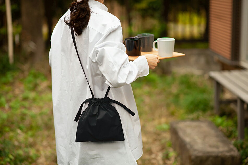 メタリックな光沢感が特徴の「シルバー」はコーディネートのアクセントに。普段使いから特別な日まで、オールシーズン使えるカラーです。写真は「ストラップバッグ SS」。 誰でも身に着けやすい落ち着いたトーンのカラーラインナップ。ファッションや好みに合わせてお選びいただけます。写真は「ストラップバッグ スマートフォン」。カラーは左から「プラム」「シーフォーム」「レッド」「ブラック」「グレー」「トープ」。 近所へのお出かけや、旅行先でスマートフォンを持ち歩く時に便利な「ストラップバッグ スマートフォン」。鍵やポケットティッシュなど、小物も一緒に収納することができます。写真のカラーは「グレー」。 肩掛け用のストラップをバッグの中に収納することで、巾着のように使用することができます。写真のカラーは「ストラップバッグ XS トープ」。 両手を開けておきたい自転車での通勤通学に便利な「バックパック」。写真のカラーは「シーフォーム」。 撥水加工が施されているので、キャンプやピクニックなどのレジャー時にも安心して使うことができます。写真は「ストラップバッグ XS ブラック」。 お財布、ポーチ、スマートフォン、ハンカチ、ペットボトルや水筒など、必需品をゆったり収納できる使い勝手のいい大きさの「ストラップバッグ SS」。日帰り旅行などにもおすすめ。写真のカラーは「グレー」。 お財布や化粧ポーチ、A5判の書籍なども余裕で収まる「ストラップバッグ SS」。内側にポケットが付いているので、荷物を整理して収納することができます。写真のカラーは「ブラック」。※「シルバー」はポケットは付いていません。 「バックパック」は、水筒や折り畳み傘が丸ごと入ってしまうほど大きな2つのポケットがアクセント。内側にも1つポケットが付いており、荷物を小分けに収納できます。本体には雑誌やタブレット、ちょっとした着替えなどが楽々収まります。写真のカラーは「ブラック」。 メインにも、サブにも! 思わず手が伸びるバッグ ドローストリング バッグ(フォームユニフォーム) どんなバッグを選ぶかで、1日の快適さ、心地よさ、動きやすさに大きく差が出るもの。リトアニアの「フォームユニフォーム/formuniform」は、その名にもある通り、「制服」=「ユニフォーム」をデザインのモチーフにしているユニークなブランド。彼らがデザインした「ドローストリングバッグ/drawstring bag」は、思わず手が伸びる、使い勝手のいいバッグです。 軽くて丈夫なポリエステル製。張りがあって、きちんと感があるだけでなく、さらりとしたスムースな生地なので、巾着部分もストレスなく開閉できます。撥水加工が施してあるので、ちょっとした水ぬれなら気にしなくて大丈夫。お手入れもほぼ不要です。コンパクトに折りたためるので、エコバッグとしても旅行のサブバッグとしても活躍します。 シルバーのみ、ミリタリー用の防水素材でつくられています。紙のようなパリッとした質感と光沢感が特徴です。 ストラップバッグのサイズ比較。左から「SS」、「XS」、「スマートフォン」。カラーは全て「ブラック」。 「ストラップバッグ」は、スマートフォン、XS、SSの3サイズ。「スマートフォン」は、その名の通りiPhoneなどのスマートフォンがすっぽり収納できるサイズ。一緒に鍵やハンカチを入れたりと、ポケット替わりに便利な大きさです。「XS」は、貴重品をコンパクトに持ち歩きたい方におすすめ。小ぶりなサイズ感でかさばらず、気軽に身に着けることができます。「SS」は、化粧ポーチや長財布をゆったり収納できます。内側にポケットが付いていて、鍵やICカードなど、見失いがちな小物を整理することができます。(「シルバー」はポケットは付いていません。) 巾着部分をキュッと閉じればコロンと可愛らしい印象のストラップバッグ。斜め掛けにしたり、肩に掛けたり、手に持ったりと気分や装いに合わせてアレンジも楽しめます。 バックパック ブラック 「バックパック」は両手を開けておきたい自転車での通勤通学や、子どもとのお出かけ時に。水筒や折り畳み傘がすっぽり入ってしまうほど大きなポケットが外側に2つと、貴重品入れにぴったりな内ポケットが1つと収納力も抜群。本体には、雑誌やノートパソコン、ちょっとした着替えなども収まります。小さく丸めてメインバッグに忍ばせておけば、思いがけずたくさん買いものをしたときに大助かり。急な雨のときは、濡らしたくない荷物を、丸ごとバックパックに入れてしまいましょう。バッグ自体が軽く薄手なので、重いものを入れてもごわつかず、身体への負担が少ないのも嬉しいポイントです。 カラーは、コーディネートに合わせやすい、「ブラック」「グレー」「シーフォーム」「トープ」と、アクセントカラーの「レッド」「プラム」「シルバー」の7色。落ち着いた色味と軽やかな素材感で、季節を問わずに使えるところも魅力です。 商品詳細 口を絞らずに