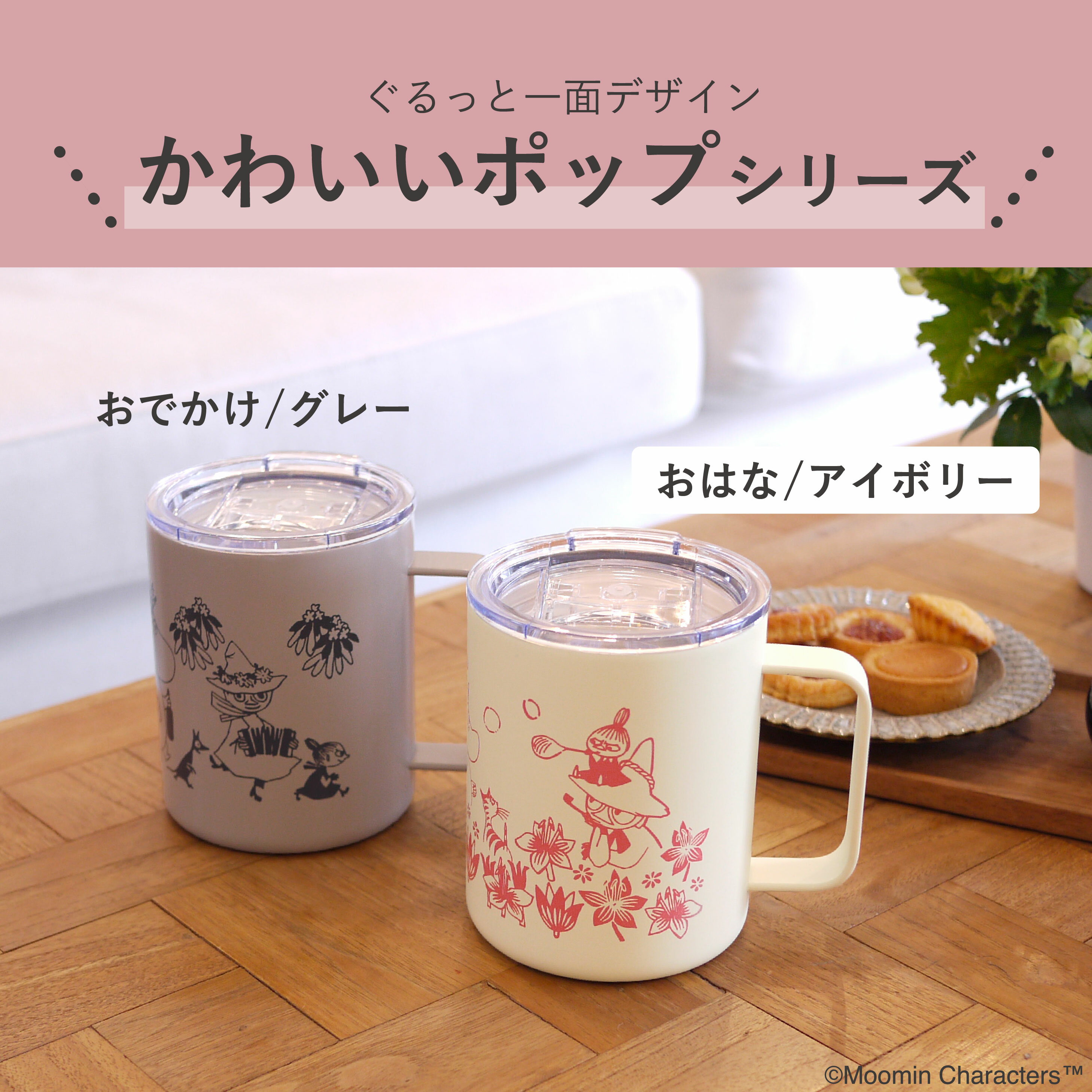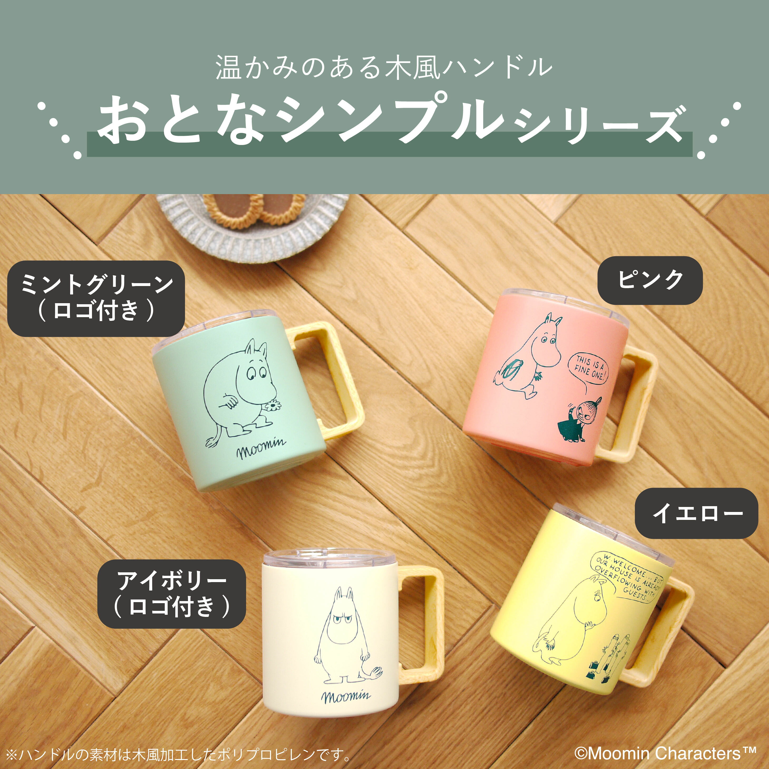 商品情報【材質】マグ本体:ステンレス鋼ハンドル:ポリプロピレン(木風加工)蓋:AS 樹脂、コポリエステル樹脂パッキン:シリコーンゴム【サイズ】内容量:共通約350ml本体:おとなシンプル 約Φ8.7×H9.2×W12cm かわいいポップ 約Φ8.7×H11.4×W12cm※奥行きは本体の直径(Φ)になります。横は取っ手込みのサイズ、高さはマグにフタを付けた状態でフタの厚さ込みで測ったサイズです。【原産国】MADE IN CHINA【ご使用の前に】初めてご使用になる前に本体にひび割れや破損がないかを確認し、食器用洗剤を付けた柔らかいスポンジ等でよく洗ってください。【ご使用上の注意】●飲み物の保冷・保温以外には使用しないでください。●乳幼児の手の届かないところで使用、保管をしてください。いたずらには注意してください。●食器洗浄機・乾燥機は使用しないでください。●電子レンジで加熱しないでください。また、冷凍庫に入れないでください。●火気の近くに置かないでください。●塗装の剥がれ・変形・サビ等の原因になりますので本体は浸け置きしないでください。【パッキンのお取り扱い方法】はずす際は、パッキンを傷つけるおそれがありますので、無理な力をかけないよう、ご注意ください。付ける際は左図に従って正しい方向に、ねじれやズレのないよう均一に取り付けてください。飲みものがあふれ出たり、漏れたりしてやけどや物を汚す原因になります。※大人シンプルのフタのスライダーは取り外すことができませんので予めご了承ください。スライダーに無理な力を加えると破損の原因になりますので、ご注意ください。※取扱説明書をよく読んでからご使用ください。お読みになった後は大切に保管してください。【注意事項】商品の色はモニターの具合で実物と若干異なる場合がございます。予めご了承ください。公式 ムーミン ステンレスマグカップ (350ml) MOOMIN マグカップ プレゼント ムーミントロール リトルミイ スナフキン ニョロニョロ 真空マグカップ 真空マグ 蓋つき 蓋付き フタ付き かわいい おしゃれ オフィス 蓋付きマグカップ 保温 保冷 ギフト 大人可愛い グッズ 《~ムーミンたちとカフェ気分~》保温力・保冷力で「おいしい」をキープ!蓋付きステンレスマグ 1. 人気キャラクター ムーミン谷の仲間たち【おとなシンプルシリーズ】温かみのある木風ハンドルくすみカラーにそっと物語をのせて。シンプルだけど特別なステンレスマグ。カラー:アイボリー(ロゴ付き)/ミントグリーン(ロゴ付き)/ピンク/イエロー【かわいいポップシリーズ】ぐるっと一面デザインムーミンの世界が広がる。毎日がもっと楽しくなるステンレスマグ。カラー:アイボリー/グレー2. 真空二重構造二重構造で本体の内側と外側の間が真空状態になっていることにより、外側は結露が出にくく、手を触れても熱を感じにくい仕様です。温かい飲み物は保温効果、冷たい飲み物は保冷効果があります。《保温・保冷効力(自社実験による結果)》保温効力:開始時95℃→1時間後67.6℃保冷効力:開始時4℃→1時間後5.6℃※保温効力及び保冷効力は、目安です。保証するものではありません。※保温効力とは、室温20℃±2℃において製品に熱湯を入れ、その温度が95℃±1℃になった時から1時間放置した場合の温度です。※保冷効力とは、室温20℃±2℃において製品に冷水を入れ、その温度が4℃±1℃になった時から1時間放置した場合の温度です。3. スライド式の蓋付き飲まない時は蓋を閉めて保温・保冷やホコリ防止に。 2