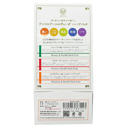 JANコード:4582213867213 商品コード:612004-03※こちらはお取り寄せの商品のため、通常より出荷までにお時間がかかります。3〜7営業日以内の発送になります。小型犬一回分のハーブ。体重5kg、テディベアカット(長め)のプードル全身一回分。 その他シーズー(短め)、M・ダックスロング、M・シュナウザーなど。 体重3kg未満の短毛種なら2回分。まずは1回試してみたい方に ○潤い成分のアロエベラをプラス。 ○原材料はオーガニック100%。 ○乾燥によるフケ・かゆみ・静電気が気になる季節におすすめ。 【使い方】 ハーブの8〜10倍のお湯で溶いたペーストを、全身を濡らしたわんちゃんに塗布します。皮膚に密着するようにまんべんなく塗り、全身に塗り終わって1〜2分したらシャワーでしっかりと洗い流します。その後、シャンプー・リンスをしてください。