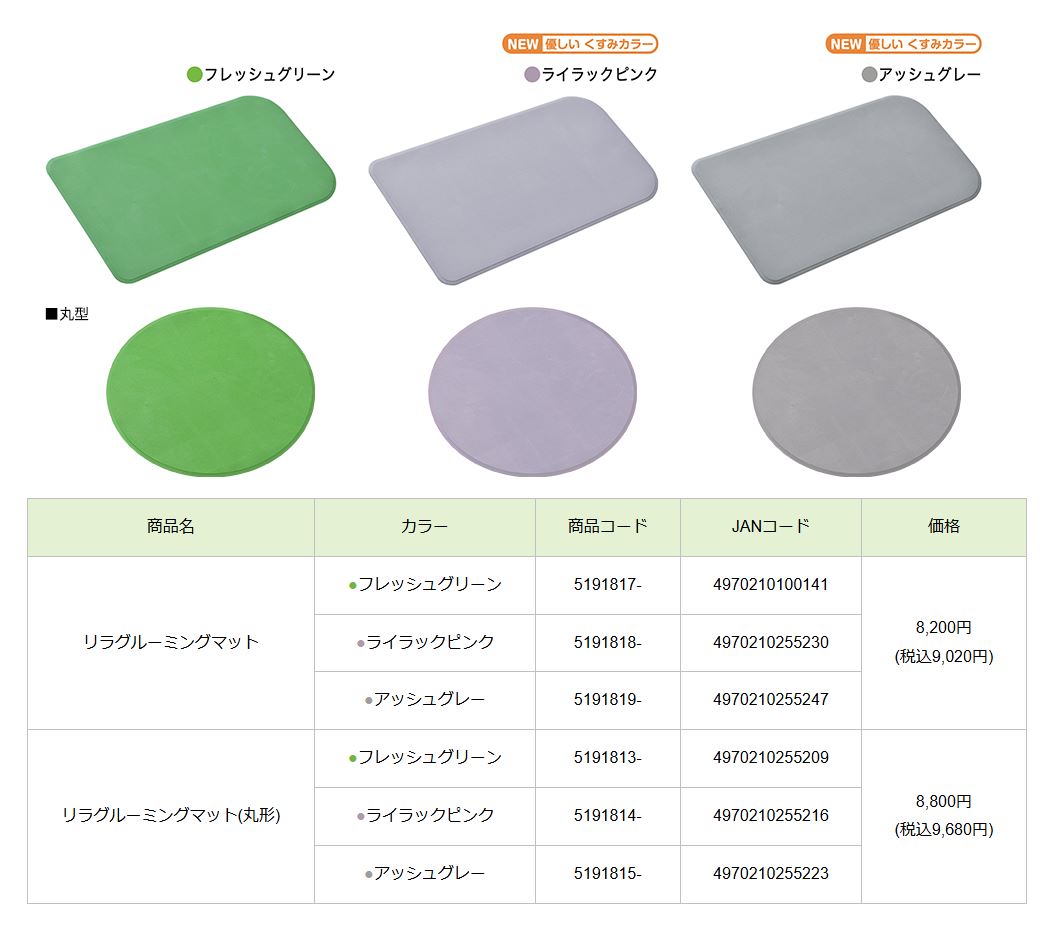 【お取り寄せ】 リラグルーミングマット ( 丸型) フレッシュグリーン ライラックピンク アッシュグレー 日本製 国産