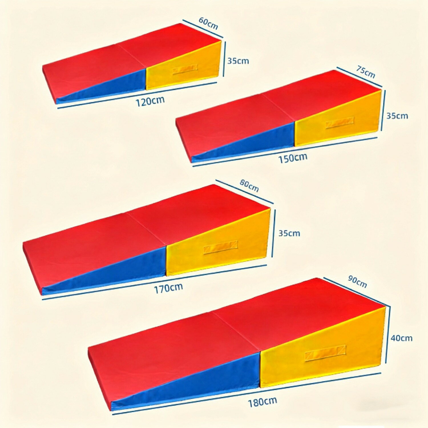 傾斜体操マット 体操用折りたたみ式傾斜マット 折りたたみ傾斜ジムマット 体操チーズの楔形の斜めマット 新体操用踏切板 防水PVC 運動マット 高反発スポンジ ハンドル付き ホームフィットネス、体操トレーニング、ヨガストレッチ用 170*80*35cm