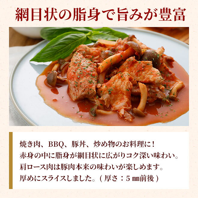商品情報 名称 国産 豚肩ロース肉スライス 内容量 500g 賞味期限 製造日より180日(出荷日から30日以上あるものをお届け) 保存方法 -18℃以下で保存してください。 加工者 株式会社 フリーデン平塚工場 神奈川県平塚市南金目236-2 0120-957-656 様々なお贈り物にご利用いただけます。 ぶたのカワイイ箱でお届け!ちょっとした贈り物に喜ばれます。 【季節のご挨拶】 御正月 お正月 御年賀 お年賀 御年始 母の日 父の日 初盆 お盆 御中元 お中元 お彼岸 残暑御見舞 残暑見舞い 敬老の日 クリスマス クリスマスプレゼント 寒中お見舞 お歳暮 御歳暮 春夏秋冬 【日常の贈り物】 御見舞 退院祝い 全快祝い 快気祝い 快気内祝い 御挨拶 ごあいさつ 引越しご挨拶 引っ越し お宮参り御祝 志 進物 【長寿のお祝い】 61歳 還暦(かんれき) 還暦御祝い 還暦祝 祝還暦 華甲 (かこう) 70歳 古希 (こき) 祝古希 古希御祝 77歳 喜寿 (きじゅ) 祝喜寿 喜寿御祝 80歳 傘寿 (さんじゅ) 傘寿御祝 祝傘寿 88歳 米寿 (べいじゅ) 祝米寿 米寿御祝 90歳 卒寿 (そつじゅ) 卒寿御祝 99歳 白寿 (はくじゅ) 白寿御祝 百寿御祝 祝白寿 100歳 百寿 (ひゃくじゅ・ももじゅ) 祝百寿 紀寿 (きじゅ) 108歳 茶寿 (ちゃじゅ) 祝茶寿 茶寿御祝 不枠 (ふわく) 111歳 皇寿 (こうじゅ) 川寿 (せんじゅ) 120歳 大還暦 (だいかんれき) 昔寿 (せきじゅ) 賀寿 寿 寿福 祝御長寿 【祝事】 合格祝い 進学内祝い 成人式 御成人御祝 卒業記念品 卒業祝い 御卒業御祝 入学祝い 入学内祝 小学校 中学校 高校 大学 就職祝い 社会人 幼稚園 入園内祝い 御入園御祝 お祝い 御祝い 内祝い 金婚式御祝 銀婚式御祝 御結婚お祝い ご結婚御祝い 御結婚御祝 結婚祝い 結婚内祝い 結婚式 引き出物 引出物 御出産御祝 ご出産御祝い 出産御祝 出産祝い 出産内祝い 御新築祝 新築御祝 新築内祝い 祝御新築 祝御誕生日 バースデー バースディ バースディー 七五三御祝 753 初節句御祝 節句 昇進祝い 昇格祝い 就任 【弔事】 御供 お供え物 粗供養 御仏前 御佛前 御霊前 香典返し 法要 仏事 新盆 新盆見舞い 法事 法事引き出物 法事引出物 年回忌法要 一周忌 三回忌 七回忌 十三回忌 十七回忌 二十三回忌 二十七回忌 御膳料 御布施 【法人向け】 御開店祝 開店御祝 開店お祝い 開店祝い 御開業祝 周年記念 来客 異動 転勤 定年退職 退職 挨拶回り 転職 お餞別 贈答品 粗品 おもたせ 手土産 心ばかり 寸志 新歓 歓迎 送迎 新年会 忘年会 二次会 記念品 景品 開院祝い 【お返し】 御礼 お礼 謝礼 御返し お返し お祝い返し 御見舞御礼 【プチギフト】 お土産 ゴールデンウィーク GW 帰省土産 バレンタインデー バレンタインデイ ホワイトデー ホワイトデイ お花見 ひな祭り 端午の節句 こどもの日 ギフト プレゼント 【ここが喜ばれています】 上品 上質 高級 グルメギフト お取り寄せグルメ お取り寄せ ご飯のお供 ごはんの友 ギフト プレゼント 贈り物 贈答用 贈答品 自分買い お肉 にく おかず お祝い 内祝い 美味しい パーティー ホームパーティー おもてなし 箱かわいい 箱 可愛い カワイイ 【こんな想いで…】 ありがとう ごめんね おめでとう 今までお世話になりました いままで お世話になりました これから よろしくお願いします 遅れてごめんね おくれてごめんね 【こんな方に】 お父さん 父 お母さん 母 兄弟 姉妹 子供 おばあちゃん 祖母 おじいちゃん 祖父 妻 奥さん 嫁 彼女 夫 旦那さん 旦那 彼氏 先生 職場 上司 先輩 後輩 同僚■ 家族みんなが喜ぶ「やまと豚肩ロース肉」 やわらかいのに食べ応えがある——そんな理想の豚肉を追求した「やまと豚バラ肉」。 脂身と赤身のバランスが絶妙で、ジューシーなのに脂っこくない、赤身の強い旨みが特徴です。 家庭料理から特別な日のメニューまで、幅広く活躍する万能な精肉です。カレー、焼肉、丼、煮物など、どんな料理にも相性抜群。 国産ブランド豚ならではの安心感と、噛むたびに広がる甘みのある旨味をお楽しみください。 --- ■ 対象ユーザー・年代 日々の食卓を支える主婦層をはじめ、共働き世帯や一人暮らしの方、健康志向のご家族にもおすすめ。 幅広い年齢層からリピートをいただいています。 ・主婦/共働き層:時短調理・冷凍保存・作り置きに便利 ・家族世帯:子供も喜ぶやわらか食感で夕食のメインに最適 ・一人暮らし:500gのパックで無駄なく使える ・シニア層:良質なたんぱく質が摂れる --- ■ 用途・利用シーン 「今日はカレー」「週末は焼肉」「アウトドアでBBQ」——そんな幅広いシーンで大活躍。 日常の家庭料理からパーティ、ギフトまで、あらゆるTPOに対応できる柔軟さが魅力です。 ・家庭用:夕食・お弁当・丼・煮込み料理・炒め物 ・イベント用:バーベキュー、ホームパーティ、キャンプ飯 ・ギフト用途:誕生日、父の日、母の日、敬老の日、お歳暮、お中元など --- ■ サイズ・形状のバリエーション 約5mmのスライスは、焼いても縮みにくく、カレーや炒め物にちょうどいい厚さ。 食べ応えがありながら、火の通りも早く調理がスムーズです。 --- ■ 機能・特徴 こ
