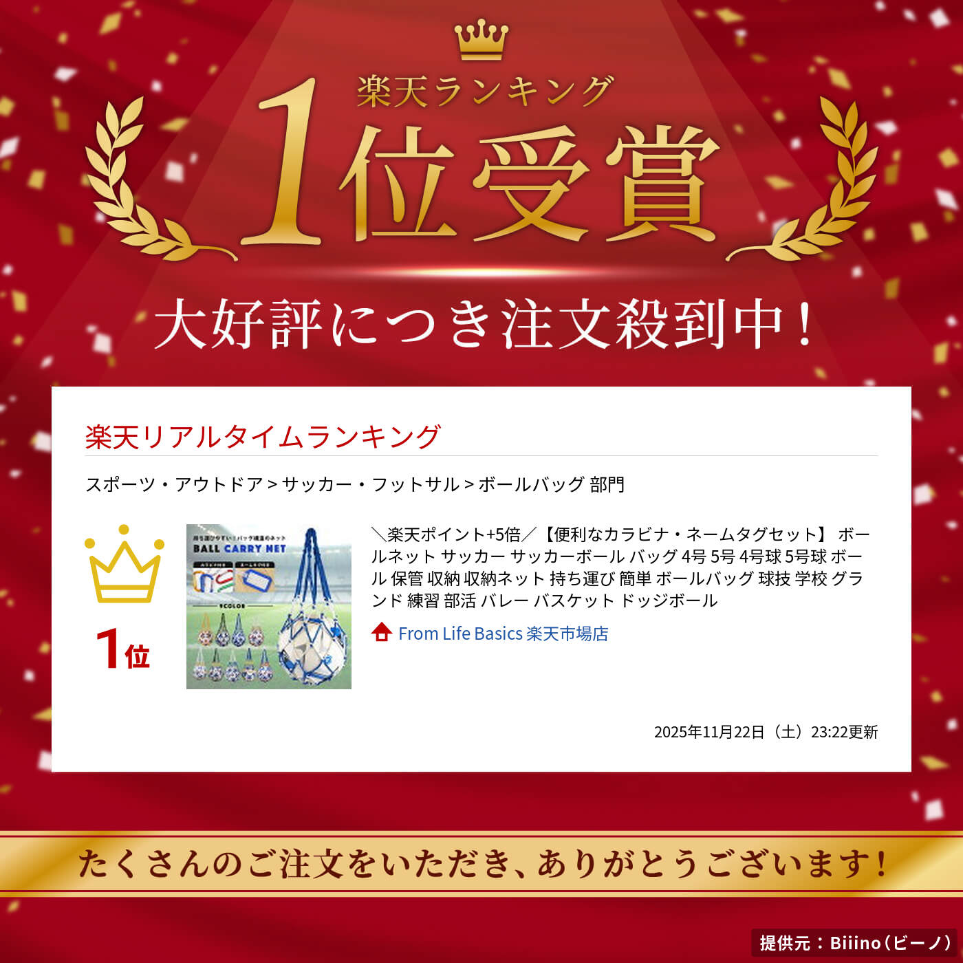 \複数購入5%オフCP/【便利なカラビナ・ネームタグセット】 ボールネット サッカー サッカーボール バッグ 4号 5号 4号球 5号球 ボール 保管 収納 収納ネット 持ち運び 簡単 ボールバッグ 球技 学校 グランド 練習 部活 バレー バスケット ドッジボール