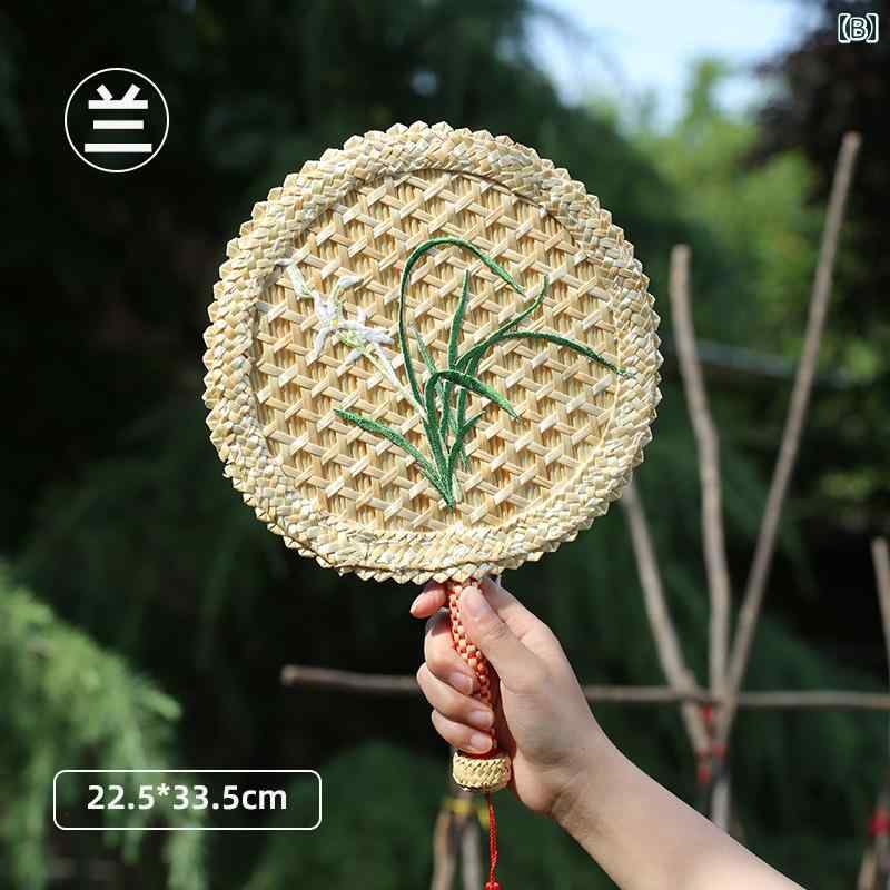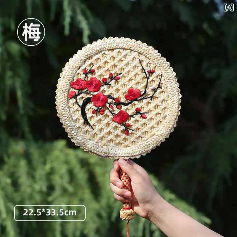 うちわ おしゃれ 春夏 エスニック チャイナ風 麦わら 手織り タッセル インテリア 雑貨 レトロ エレガント ナチュラル 円形 ハート 梅 蘭 竹