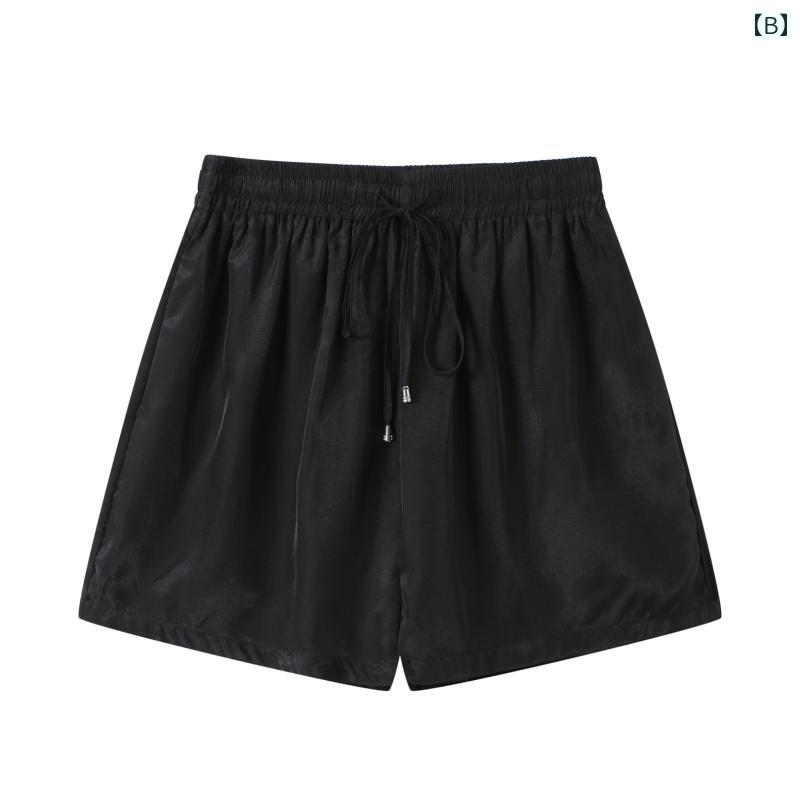 ショートパンツ レディース かわいい アセテート ロゴ 半袖 ハイウエスト ポケット フェイクレザー ショートパンツ 夏 黒