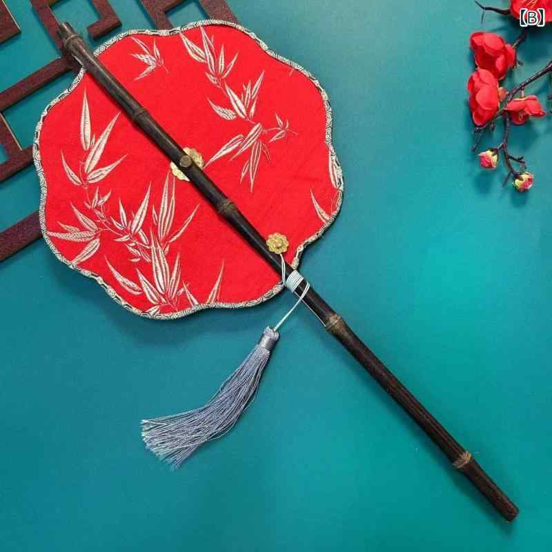扇子 中国風 レトロ 伝統的 うちわ 巻き付け式 腰扇 ロング柄 タッセル 装飾 漢服 舞踏 パフォーマンス 個性的 エレガント 黒 紫 赤 蝶 竹模様