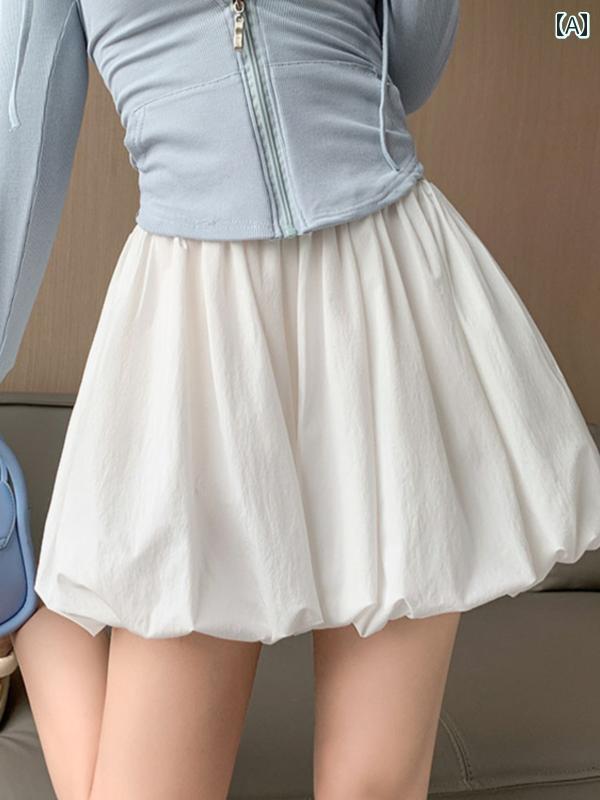 バルーン ショートパンツ レディース 韓国 大きいサイズ 夏 薄手 ハイウエスト 着痩せ効果 ふんわり スカパン カジュアル シンプル 無地 おしゃれ 黒 白