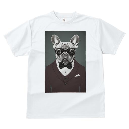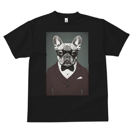 フレンチブルドッグ Tシャツ レディース 犬ファン 半袖 春夏 犬柄 プリント カジュアル かわいい 人間用 個性派 ここだけのデザイン 面白 スーツ フレンチブルドッグ 蝶ネクタイ メガネ フォーマル