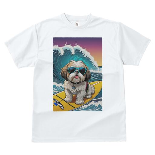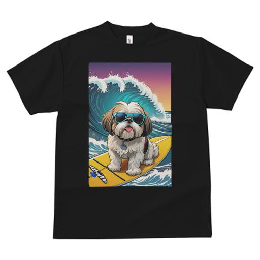 シーズー Tシャツ 犬愛 ユニークデザインレディース 犬ファン 半袖 春夏 プリント 大人カジュアル かわいい 人間用 ギフト 個性的 猛暑対策 波 シーズー サーフィン サングラス 夏