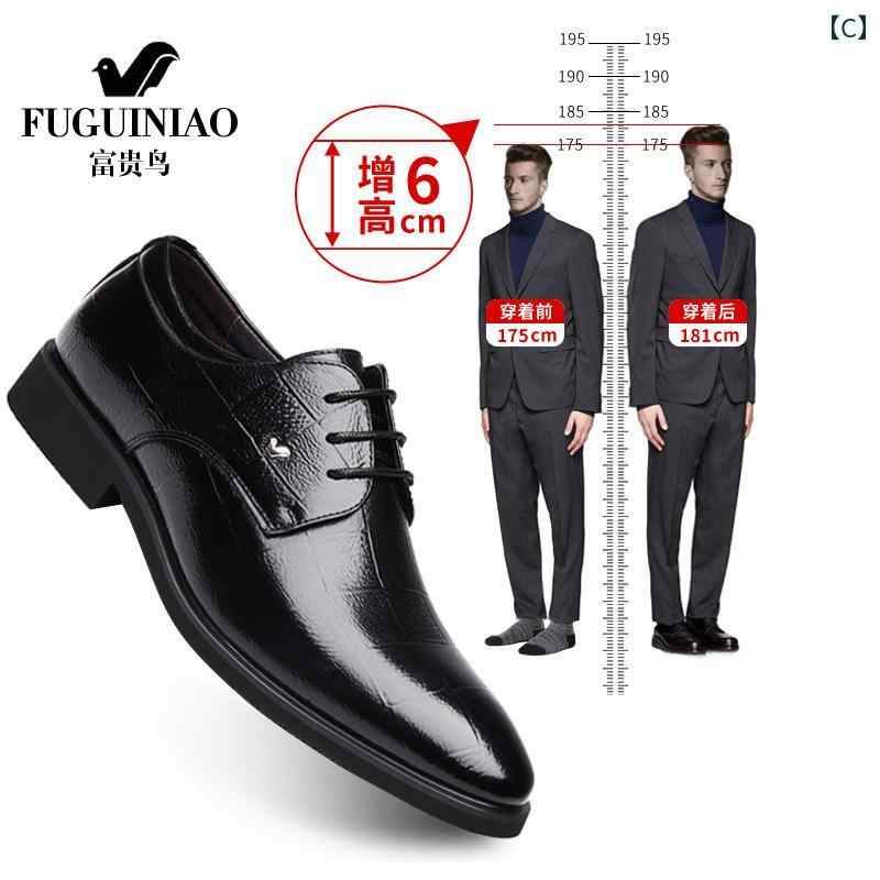 ビジネスシューズ メンズ 男性用 革 牛革 レザー シークレットヒール インヒール ブラック 黒 レースアップ 紐靴 ポインテッドトゥ ダービーシューズ フォーマル 冠婚葬祭 結婚式 通勤 通気性 オールシーズン ラバーソール