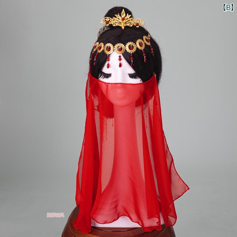 フェイスベール 中国レトロ風 漢服用 古装 コスプレ タッセル 耳掛けタイプ ビーズ装飾 顔隠し 無地 UVカット 風 エレガント 舞台衣装 撮影用 仮装小物