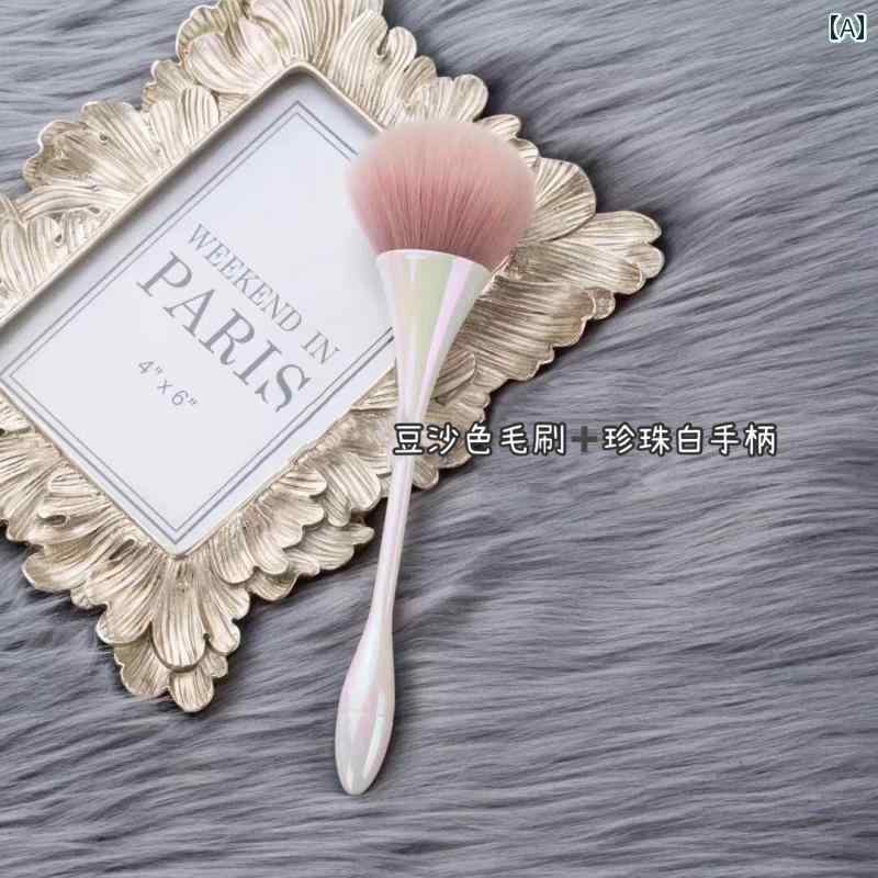 多機能メイクブラシ ネイルブラシ フェイス チークブラシ 極細 柔らかい 毛質 大きめヘッド くびれ ハンドル 木 ウッド調 シンプル ブラック ホワイト ピンク ナチュラルカラー