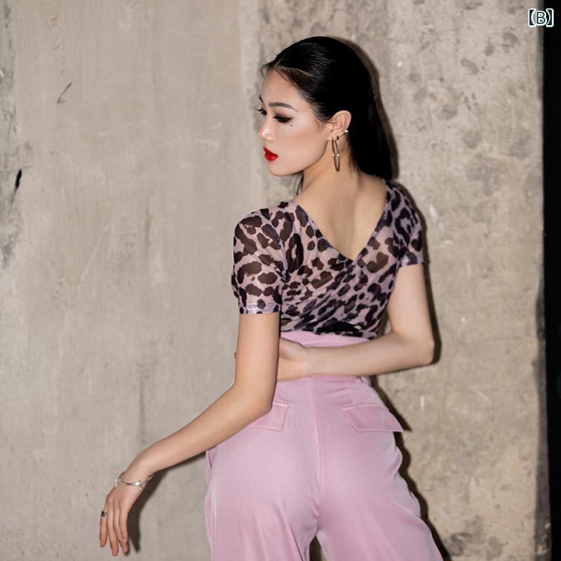 ダンスウェア レディース おしゃれ 春夏 半袖 セクシー バッククロス 練習着 ステージ衣装 ラテン ダンストップス 体型カバー