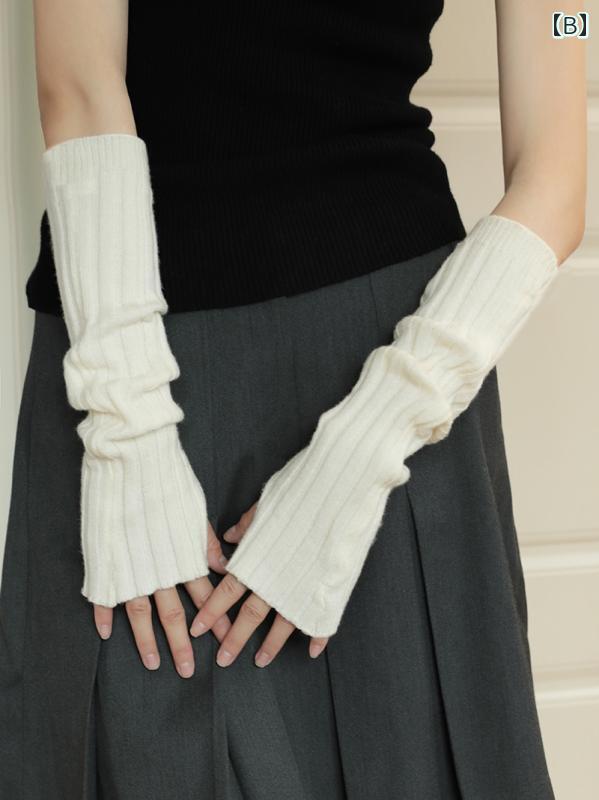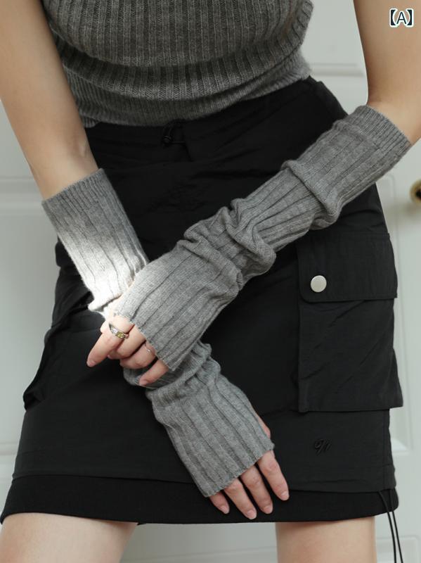 アームウォーマー グレー 長め ニット 指なし レディース おしゃれ 暖かい 秋冬 ヴィンテージ風 Y2K シンプル y2k 袖口ゆったり