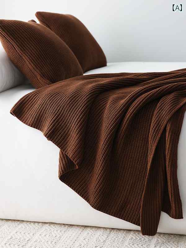 ブランケット 大判 ベッドスロー おしゃれ 寝室 柔らかい レトロ ソファ カバー 装飾 フラッグ 無地 シンプル ニット 厚手 暖かい クッション 茶 ジッパー