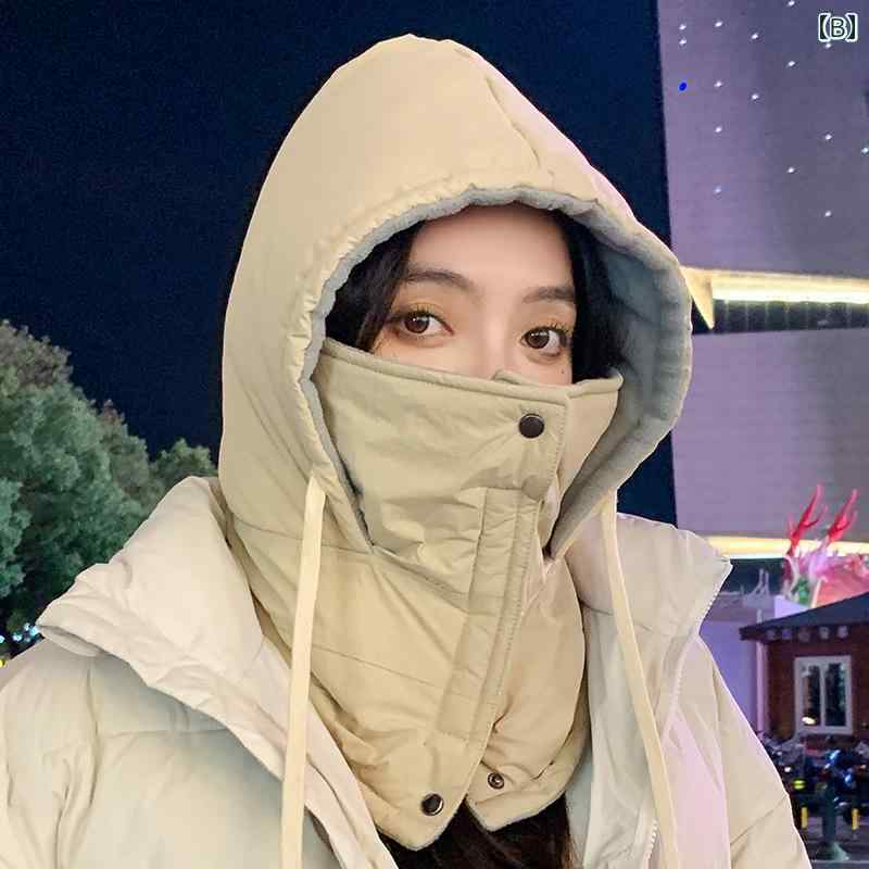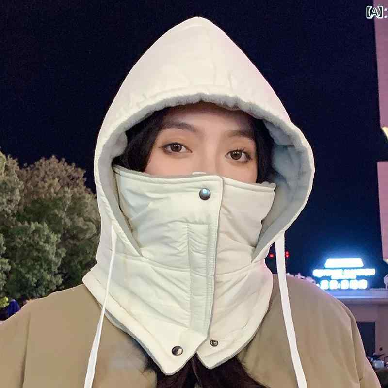 帽子 レディース 女性用 秋冬 防寒 耳当て付き 裏起毛 厚手 保温 防風 フェイスマスク一体型 顔カバー コットン バイク 通勤 通学 アウトドア 雪かき スキー スノーボード サイズ調整可能