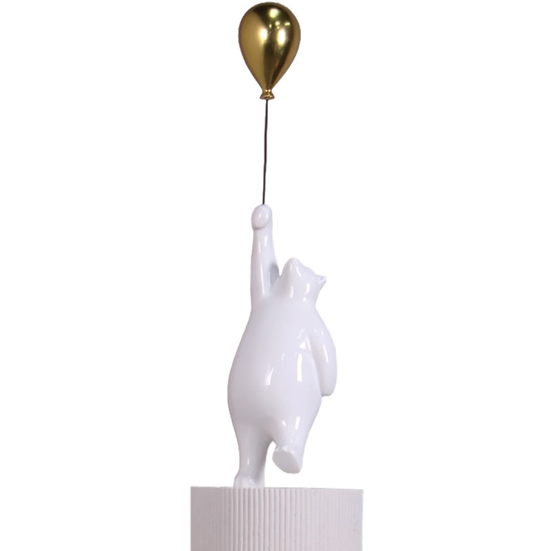 FRPアニマルオブジェ 円柱の台座に乗った風船を持ったクマ置物 動物 白くま 白クマ 動物園 店舗 カフェ 喫茶店 レストラン 飲食店 インテリア イベント ディスプレイ 実物大 等身大 リアル 等身大フィギュア 【whlny】