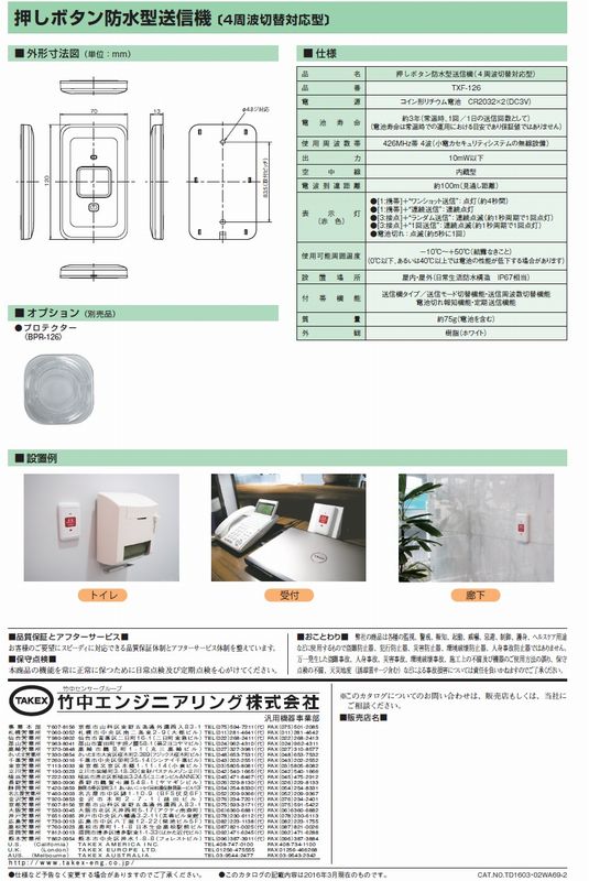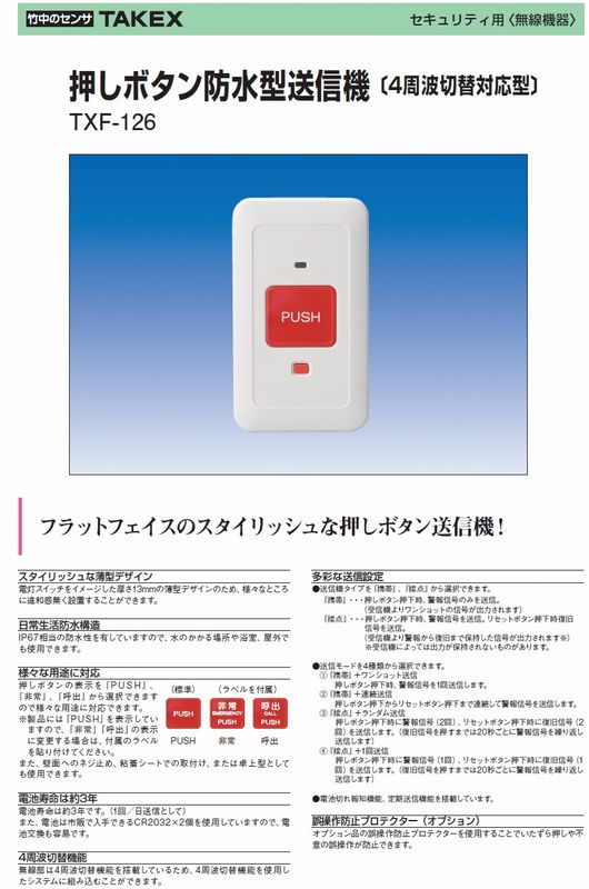 押ボタン防水型送信機 (4周波切替対応型)【TXF-126】TAKEX/竹中エンジニアリング