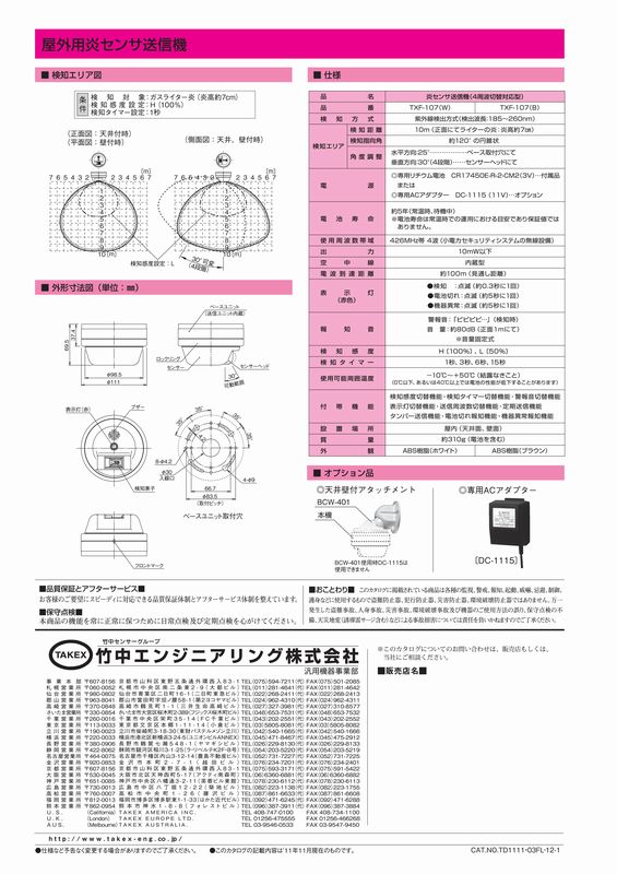 無線タイプ 炎センサ送信機 【TXF-107(W)】TAKEX/竹中エンジニアリング
