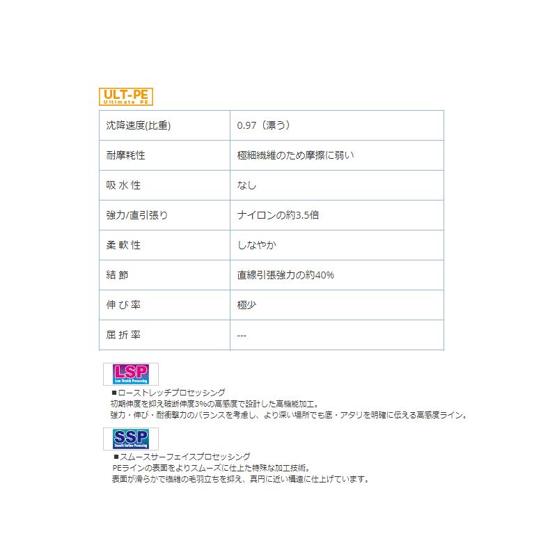 仕様表【極限の感度・・・HS4】バタバタっと連続してHITする場面に遭遇するのは1日エギを投げ倒してもほんの僅かなタイミングである。そんな状況に遭遇するには状況判断も大切だが、「KEEP CAST」即ち投げ続けることが重要になってくる。その時、どこに1番負担が掛かるだろうか?それはやはりメインラインである。しかし、“HS4”はさらに進化した4ブレイドであるため耐摩耗性が上がり、ハードジャークやファイト時、ガイドとの摩擦や浮遊物などに接触しても安心してやり取りを楽しむ事が出来る。もちろん強力も高いので多少無理をしても問題ない。高発色で視認性が良いカラーマークにより、イカパンチの変化を見逃さずフッキングに持ち込める。また10m毎のカラーローテーションで、飛距離がよりイージーに把握できる。さらに、ティップランでも扱いやすいマーキングパターンになっているのは言うまでもない。極限の感度を求めて山田ヒロヒトが考え抜いた。「俺が求めていた最高峰の感度を得ることを可能とした“Higher Stage 4”」[PEライン エギング 4本撚り 山田ヒロヒト ヤマラッピ]【スペック】・規格:240m・LB:0.3・直強力(kg):MAX 2.5・カラー:ホワイト・ピンク・ライトグリーン詳細はこちら
