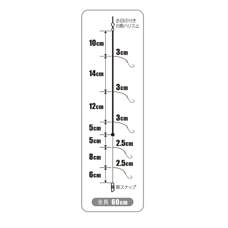 仕様表テーパー設計、カラーライン採用と細部まで拘り抜いた珠玉の「桧原MAX」仕掛け底付近のハリ間隔を短くすることにより、厳寒期などによくみられる底ベタの状況で効率よくワカサギにアピールできます。また、底付近の少ない光量の中でも紫外線をよく反射しアピールできるミルキーピンク玉を採用。■幹糸テーパー設計 PAT.P太さの違うラインを組み合わせたテーパー状の幹糸はいままでにない動きを演出可能。異次元の誘いでワカサギを魅了し、微細なアタリを増幅させます。■ステルスイエロー採用水中でのステルス性が高い「イエロー」のラインを採用。ラインプレッシャーを極力排除し、エサを際立たせることでワカサギの警戒心を和らげます。VARIVASバリバス VAW-361 ワカサギ仕掛け 桧原MAX 5本鈎●品番:VAW-361●タイプ:5本●鈎(号数):新秋田狐かねり鈎 1号●幹糸(号数):ナイロン 0.25〜0.175号●ハリス(号数):ナイロン 0.175〜0.15号●仕掛け全長:60cm●入数:1詳細はこちら