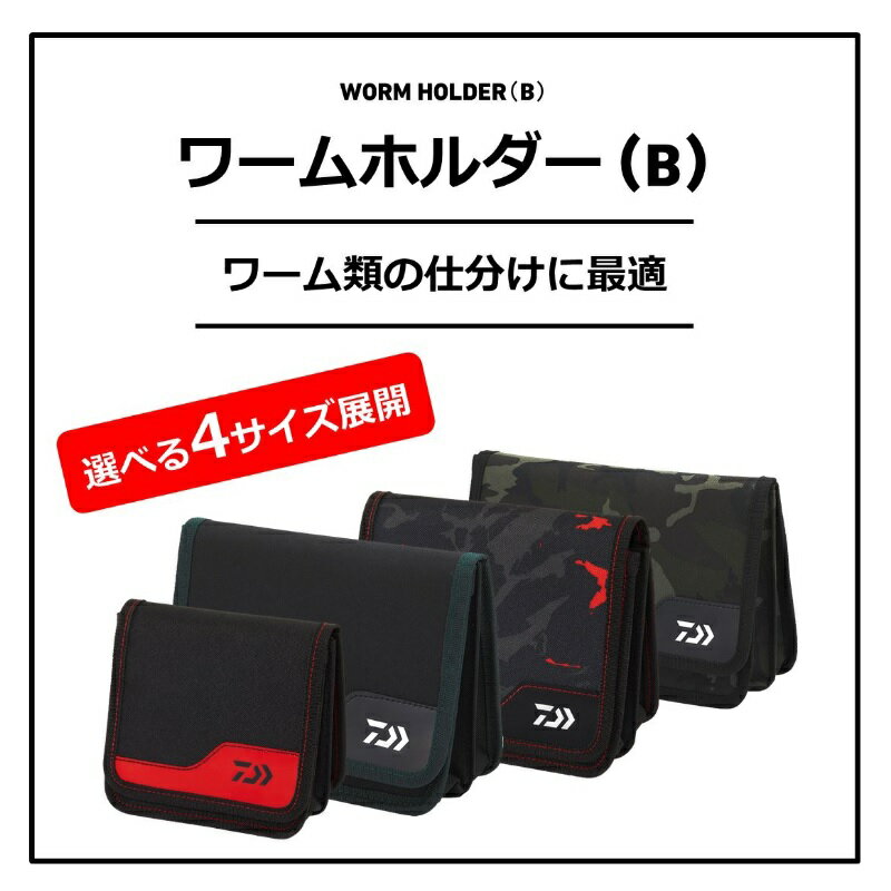 仕様表ワーム類の仕分けに最適。様々なワームサイズに合わせて選べる『4サイズ展開』仕分けに便利な『2室構造』ファスナー付き『メッシュポケット』■Mサイズ袋幅16.5cm(〜5インチサイズ)までのDAIWAワーム袋を12枚程度収納可能。DAIWA WORM HOLDER (B)ダイワ ワームホルダー(B)●サイズ:M●カラー:フレンチネイビー●本体外寸(cm):約8×20×17●素材:ポリエステル※本体外寸は縦(奥行)×横×高さです。詳細はこちら
