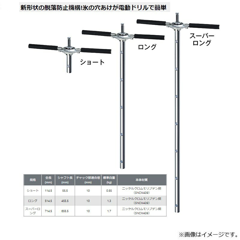 仕様表新形状の脱落防止機構。氷の穴あけが電動ドリルで簡単。アイスドリルと電動ドリルを接続して使えるアダプター。アイスドリルのハンドルを外し、アイスドリル電動用ベアリングアダプターを差込めば後は電動ドリルで氷の穴開けが可能。脱落防止機構が前モデルより形状を変更しさらに安心な設計に。落下防止バーは凍結しにくくソフトタッチなEVAカバー。ベアリングを内蔵しているので落下防止バーが一緒に回転せずに安全。ショートレングスと氷の厚いフィールドにも便利なロング、さらに長いスーパーロングの3レングス。ロングは5段階、スーパーロングは7段階の長さ調節が可能。電動ドリルチャック部は10mmに適合。MORA社スタンダード折りたたみ式ハンドルにも取り付け可能。強度は合金鋼のなかでは最高クラスの強度を持つニッケルクロムモリブデン鋼(SNCM439)使用。※氷貫通時にドリルが抜け落ちないようにドリルチャックの爪がスリットにはまるように装着してください。(正しく装着していなくてもアイスドリルは回転しますが氷貫通時に抜け落ちます。)※インパクトドライバーはご使用いただけません。※18V以上の最大トルク70N・m以上のドリル推奨。PROX WAKASAGIプロックス アイスドリル電動用ベアリングアダプター4●商品コード:PX0234L●規格:ロング●全長(mm):514.5 ●シャフト長(mm):455.5●チャック部適合径(mm):10●標準自重(kg):1.3●本体材質:ニッケルクロムモリブデン鋼(SNCM439)詳細はこちら