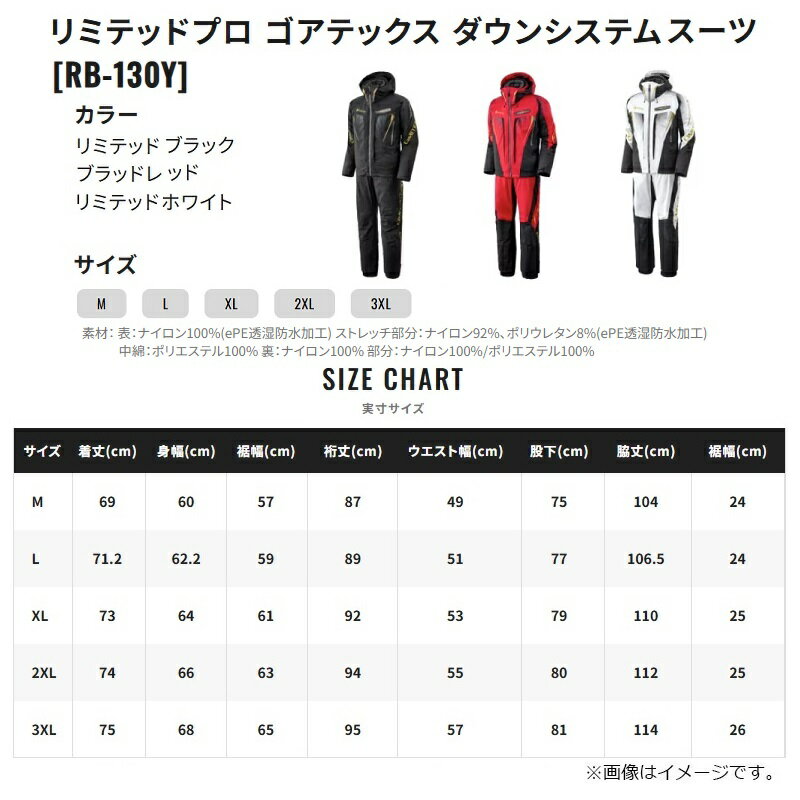 シマノ RB-130Y リミテッドプロ ゴアテックス ダウンシステムスーツ L リミテッドブラック【釣り 防寒ウェア 防寒着】