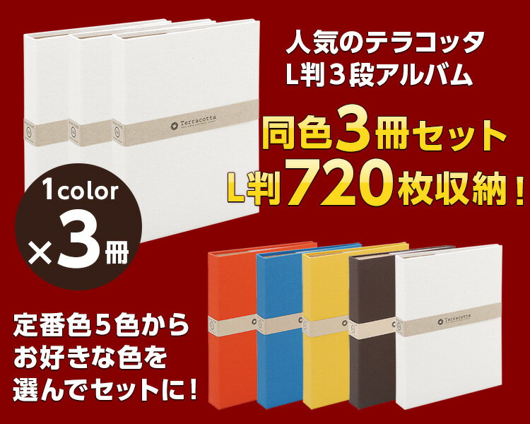 ▼ アプリインストールでクーポンGET!【カラー種類】レッド(37824) / ブルー(37825) / イエロー(37826) / ブラウン(37827) / ホワイト(37828)3冊まとめ買いセットで720枚収納可能!本体サイズタテ290×ヨコ212×背巾40mm表紙布地表紙・無線綴製本台紙L3段ポケットポイントシール台紙(クラフト)40枚収納枚数L版240枚本体重量660g 透明袋入り生産国日本製※ご使用の際は、表紙の帯を取り外してからご使用下さい。● 5色まとめ買いで送料無料!WEB限定 カラーバリエーション● ベージュ TER-L3P-140-BE● グラスグリーン TER-L3P-140-GG● レンガブラウン TER-L3P-140-LB● グレー TER-L3P-140-G● ガーネットレッド TER-L3P-140-GR● アジサイブルー TER-L3P-140-AB● ライトイエロー TER-L3P-140-LY● チョコ TER-L3P-140-C● 生成 TER-L3P-140-K収納枚数/L判240枚 対応するプリントサイズ/Lサイズ L判 L版 段数/3段 特徴/コメントが書ける 台紙の色/クラフト 表紙の色/レッド 表紙の色/ブルー 表紙の色/イエロー 表紙の色/ホワイト 表紙の色/ブラウン /おしゃれ/雑貨/かわいい/正規品新品/ナカバヤシ/Nakabayashi/アルバム/フォトアルバム/アルバム 写真/写真 アルバム/フォトアルバム 大容量/写真/ポケットアルバム/クラフト台紙/L判3段/L版240枚収納/雑貨アルバム/テラコッタ/Terracotta◆PR こちらもオススメ!!◆【↓テラコッタ増量版360枚収納】