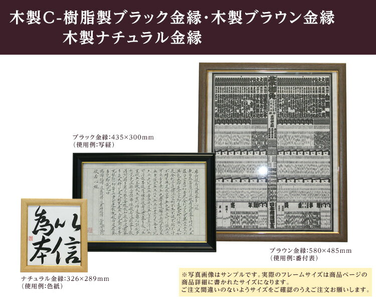 ▼ アプリインストールでクーポンGET!●収納用紙サイズ(縦+横):1001-1050mm■■■ご注文方法■■■ご注文時の備考欄に、下記内容をご入力ください。1:入れられる作品のサイズ2:フレーム素材↓下記フレーム素材よりお選びください。商品説明【フレーム素材】【CタイプNo.8 木製ブラウン金縁】フレーム幅:30mm 厚み:14mm かぶり幅:7mm【CタイプNo.9 木製ナチュラル金縁】フレーム幅:30mm 厚み:14mm かぶり幅:7mm【CタイプNo.10 樹脂製ブラック金縁】フレーム幅:31mm 厚み:14.5mm かぶり幅:6mm【共通仕様】裏板:MDF(約t=2.5mm)透明板:PET(t=1mm)付属品:吊り下げ紐梱包:シュリンクパック(530mm以上の場合はOPP袋入)ご注文前に必ずご確認ください※片辺が1001mm以上のサイズは承ることができかねます。※メーカー直送のため他のナカバヤシ製品などと一緒にご注文の場合は、別梱包になりますので商品到着が別になります。ご注意ください。※プレゼント包装、のし 対象外の商品です。※北海道、沖縄、離島は別途送料を頂きます。■樹脂製ブラック金縁 ■樹脂製ブラック金縁…ブラックに内側の金がゴージャスな高級感を ■木製ブラウン金縁 ■木製ブラウン金縁…濃いブラウンに内側が金でシックな高級感 ■木製ナチュラル金縁 ■木製ナチュラル金縁…ナチュラルな木目も金縁でひきしまる ■付属品 吊り下げ紐付き こちらの箱に入れての発送になります