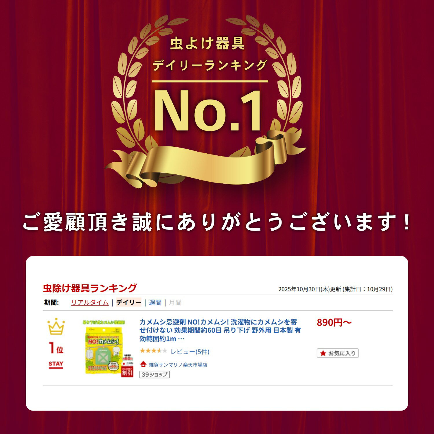 カメムシ忌避剤 NO!カメムシ! 洗濯物にカメムシを寄せ付けない 効果期間約60日 吊り下げ 野外用 日本製 有効範囲約1m 天然植物精油 害虫 大量発生 対策 まとめ買い 昆虫対策 亀虫 富士 FUJI JAPAN 軒下 ベランダ ポスト投函