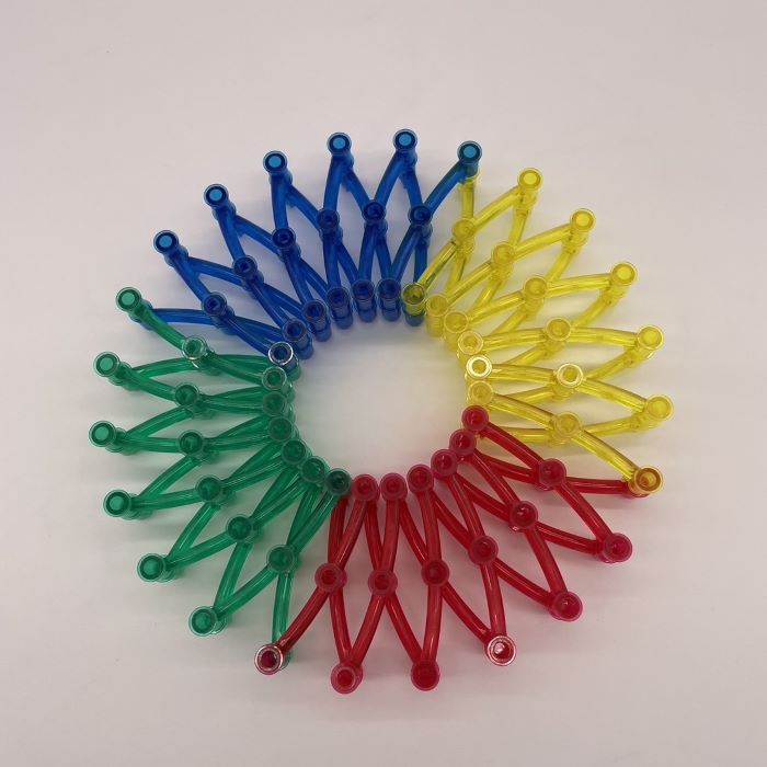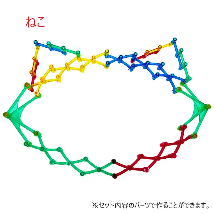 新感覚の新しいおもちゃ♪伸縮自在です☆ 手に触れてあそんでみませんか?きっと新しい発見がありますよ!! お孫さんと一緒に遊ぶ事で脳の活性化やスキンシップ、楽しいおうち時間にしましょう♪♪ 組立は簡単で、カーブ、ストレート、コーナーを「カチッと」はめて繋げていき、創造して形を創り上げていくおもちゃです!! 上級者になると、観覧車や消防車、ブリッジ(橋)など創る事が可能です。(※その際は、別途パーツをご購入いただく必要がありますのでご注意ください) 「カチッと」はまる瞬間が病みつきになるおもちゃです。ぜひ遊んでみてください♪♪ こちらのセット内容は「円:1個(カラフル)、三角:1個(カラフル)、四角:1個(青緑または黄緑:セット商品限定色)、取扱説明書」となっております。 ※色の変更は出来かねますのでご了承ください。 【注意事項】 ・可動部の隙間には指などを入れないでください。 はさまれてケガをする恐れがあります。 ・誤飲や窒息の危険がありますので、口の中には絶対に入れないでください。 ・安全のため、変形や破損した部品は使用しないでください。 ・長期の使用で劣化する恐れがありますので、破損した部品は使用しないでください。 ・商品の袋を頭から被ったり、顔を覆ったりしないでください。窒息の原因となります。 ・汚れの拭き上げにアルコールなどの薬品を使用しないでください。 部品の劣化や破損などに繋がる恐れがあります。 水またはぬるま湯で洗ってください。 ・発火の恐れがありますので、火や暖房器具の近くでは使用しないでください。 ・保護者のもとで遊ばせてください。(5歳未満のお子様には遊ばせないでください) ・屋内で使用してください。 ・長時間の直射日光は避けてください。 ・乗り物ではありません。事故のもとになりますので、本製品には乗らないでください。 ・人に向けたり、体に巻き付けたりしないでください。 ・乱暴に使用しないでください。 ・本製品を本来の目的以外で使用しないでください。 ・悪天候の為、お届け日が遅れる場合がありますので、ご理解頂きますようお願い致します。 ◎廃棄上の注意:廃棄の際は、各地方自治体の廃棄区分に従ってください。 ◎梱包方法:化粧箱を包装紙に包んでその上に送り状を貼りつけております。ご理解頂きますようお願いいたします。 ※本商品は、バラ売りではなく「組立てた状態」で届きますのでよくご検討の上、ご購入下さいますようお願い申し上げます。 国際特許取得、意匠複数取得済み 日本、米国、中国、欧州、韓国、台湾