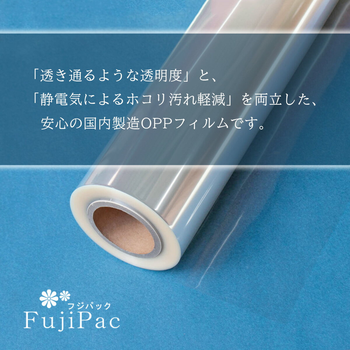 ◆「透明度」と「静電気によるホコリなどのつきにくさ」を両立した、安心の国内製造OPPフィルムです。 ◆OPPフィルムは、「透明・防湿性」の特徴を活かして小売店の商品包装用などとしてさまざまなシーンで使われています。 ◆厚さ:40ミクロン ◆サイズ:900mm幅×500m巻 ◆素材:OPP