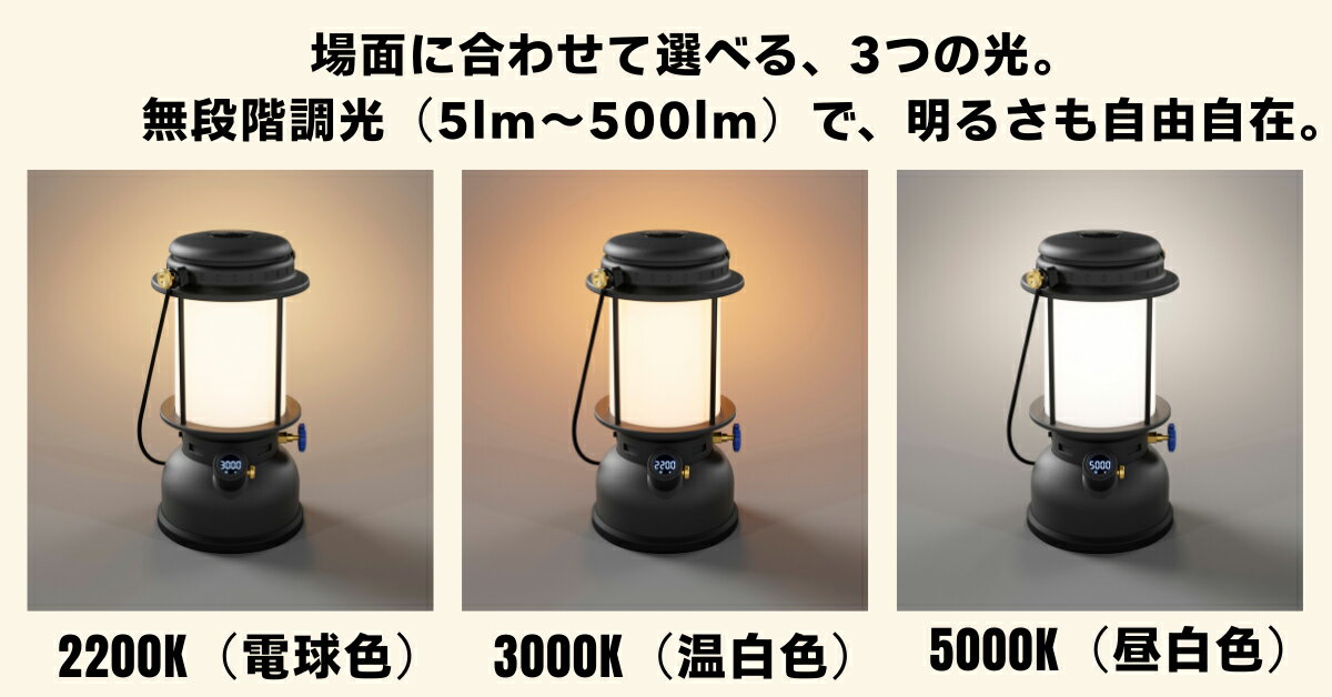 宅配便の場合、購入画面及び自動配信メールに「佐川急便」と記載されておりますが、お届け先地域や梱包サイズによってはヤマト運輸での配送に変更となります。発送後に送信される出荷通知メールに記載の配送業者でのお届けとなります。予めご了承ください。Petromaxを象徴する灯油ランタン「HK500」のデザインを踏襲しつつ、LEDを採用することで日常使いにも災害時にも対応する性能を備えたランタンです。最大500ルーメンの明るさ、3色の色温度切替え、無段階調光、USB-C入出力、防滴性能など、実用性に優れた機能を搭載。アウトドアから非常時まで、あらゆる場面で確かな灯りを提供します。※ランタンケースは別売りになります。※画像の小物等は付属品ではございません。※商品パッケージ開封後はお客様都合による返品・交換は出来ませんので予めご了承ください。※商品の色は撮影時の照明の当たり具合、ブラウザやお使いのモニターの仕様、設定により実際の商品と異なる場合がありますのでご了承ください。■3色から選べる明かり × 無段階調光最大500ルーメンの明るさは、用途や気分に合わせて無段階に調整可能。光の色は、2200K(電球色)/3000K(温白色)/5000K(白色)の3種類から選べます。焚き火の延長のような温もりある灯りから、調理・読書にも適した実用的な光まで、シーンに応じて最適な明かりを演出できます。■ ワンプッシュ点灯&防滴設計トップのプッシュボタンを1秒押すだけの簡単操作で点灯。IP44 準拠の防塵・防滴性能により、雨や湿気の中でも安心して使えます。■デジタルディスプレイで状態を可視化前面ディスプレイには、残り点灯時間 → バッテリー残量 → 明るさ → 色温度 の順で情報を表示。ホイール操作ひとつで切り替えができ、必要な情報を即座に把握できます。■USB-C デュアルポートによる給電/充電入力(INPUT)/出力(OUTPUT)ともに USB Type?C に対応。ランタン本体の充電はもちろん、スマートフォンなどにも給電可能。アウトドアや停電時でも“繋がる安心”を支えます。■サイズ:約 27.7×15.7×14.2 cm■重量 :約 1.2 kg■材質:アルミニウム、真鍮、プラスチック、ガラス■電池仕様:18650 リチウムイオンバッテリー × 4本※バッテリーは付属しておりません。■明るさ:最大 500 ルーメン(無段階調光)■色温度:2200K (電球色)/ 3000K(温白色) / 5000K(昼白色)■点灯時間: 5時間(5000K/500lm)?160時間(2200K/5lm)■入出力端子 USB Type?C(入力 / 出力対応)■防水・防塵性能:IP44(防滴仕様)