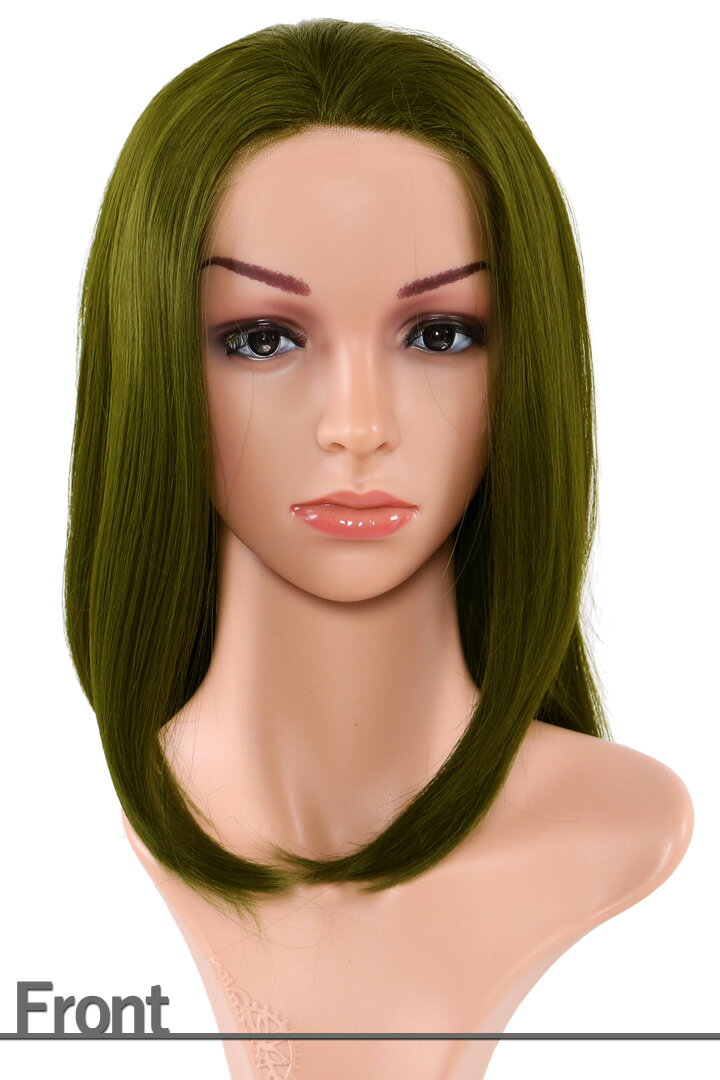 【売切セール 返品交換不可】 オールバック ウィッグ ロング フルウィッグ 男装 生え際 自然 フロントレース フルウイッグ ハロウイン ウイッグ 緑髪 【オールバック】 モスグリーン(T2609)