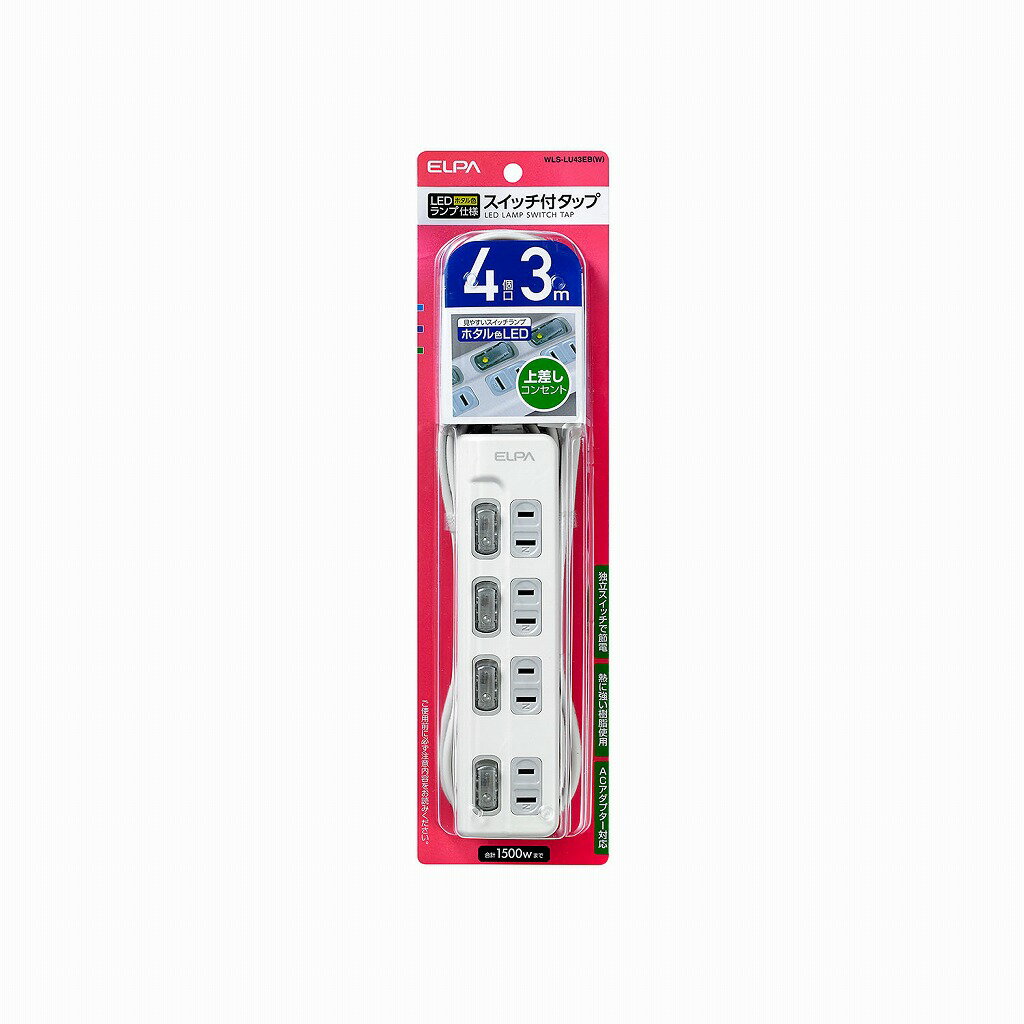 (まとめ買い)ELPA LEDランプ スイッチ付タップ4P3m上 WLS-LU43EB(W) 〔×3〕【北海道・沖縄・離島配送不可】