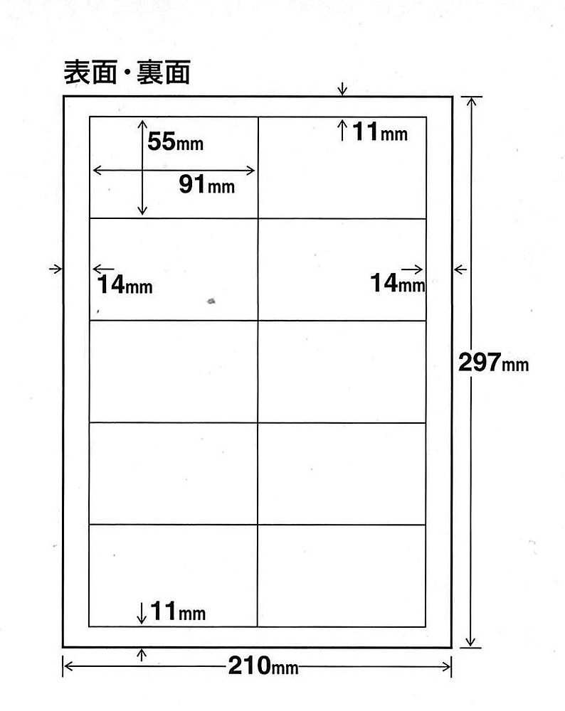メール便発送商品(送料込み)※こちらの商品はメール便にて「ポスト投函」でのお届けになります。※代金引換はご利用いただけません。※お届け日時のご指定はできません。※宅配便送料別の商品と同梱の場合、宅配便の送料となります。※通常、出荷後1〜4日程度でのお届けとなります。※荷物問合せ番号よりお荷物の追跡が可能です。●幅広いプリンタに対応 イラスト入り名刺もきれい!。●マット紙。●紙厚/180g/m2・0.21mm。●マイクロミシン目入り。●カット面、10面。●仕様、10枚入。●A4。●用紙厚さ180g/m2以上の対応する機種でお使いください。サイズ:A4面数:10面枚数:10枚●1片の大きさ/55×91mm●仕様/両面マット紙●紙厚/180g/m2・0.22mm●両面印刷用紙●マイクロミシン目入り●白色度98%程度(ISO)※用紙厚さ180g/m2以上に対応する機種でお使いください。※キヤノンやHPなどの顔料の黒インクを採用しているインクジェットプリンタでご使用の場合、重ねたりこすれたりした時に、インクが手や他の用紙に付着する場合があります。(ご使用の場合にはフォトモードを選択して印刷してください)※機種によってはにじみが発生する場合があります。