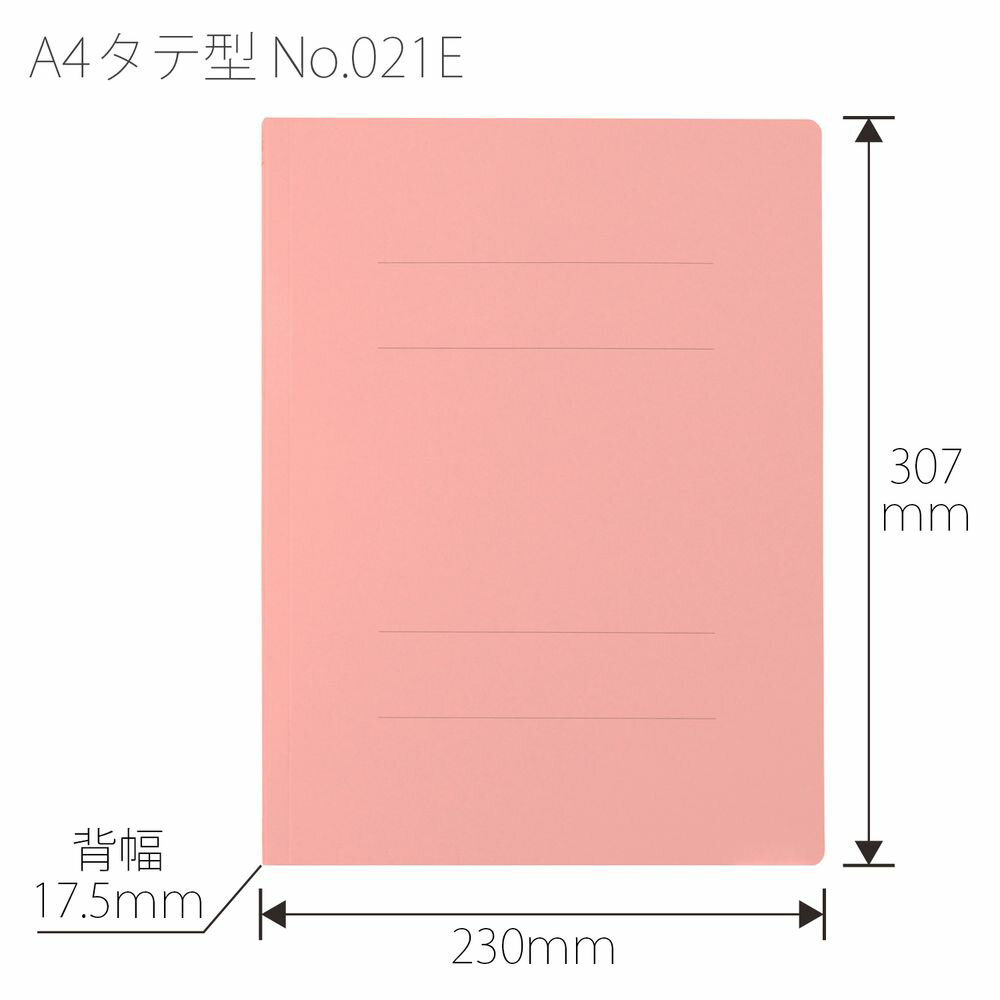 【商品説明】地球環境にやさしい、カラフルでスリムなフラットファイル!実用本位の薄型ファイルカード紙を使用したタイプの汎用フラットファイルです。省資源とコスト削減を実現しました。ノンステッチ:表紙とじしろ部の金具ステッチを無くし、のりによる接着式に変更しました。針の取り外しがいらない簡単分別を実現。背表紙の浮きもなくなり、さらにスリムにすっきりと収納できます。【詳細】商品サイズ:W230×D17.5×H307mmカラー:ピンク材質:表紙:ファイルカード紙(古紙パルプ配合率70%以上再生紙)、とじ具:100%再生ポリプロピレン(PP)規格:A4-S穴間隔:80mm収容枚数:150枚背幅:17.5mm