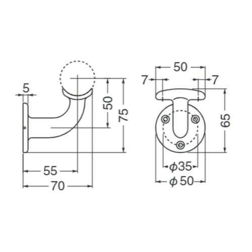 シロクマ ステンA形ブラケットL受 シルバー ABR-100 35φ 【北海道・沖縄・離島配送不可】