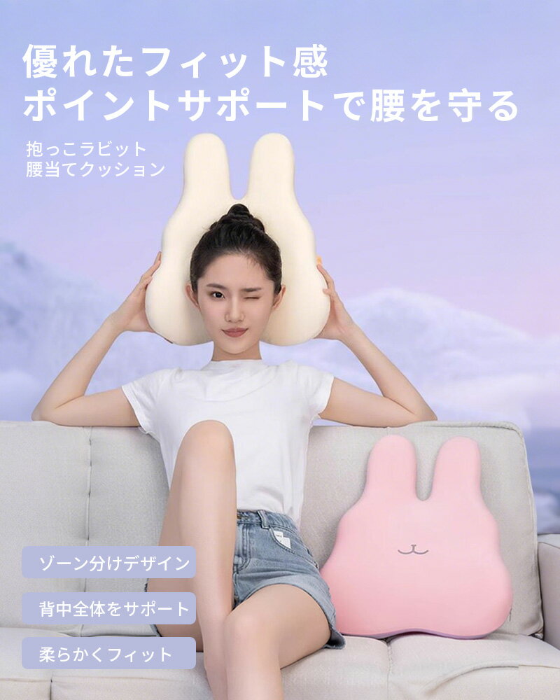 ★1点6%、2点11%OFFクーポン★Gadeel 腰クッション 可愛いウサギのデザイン 腰枕 低反発クッション 快適な腰まくら 背もたれクッション 腰当 ウェストクッション 健康グッズ 腰ケア ランバーサポート 腰楽 姿勢矯正 腰サポート 人間工学 ギフト ピンクとグレー