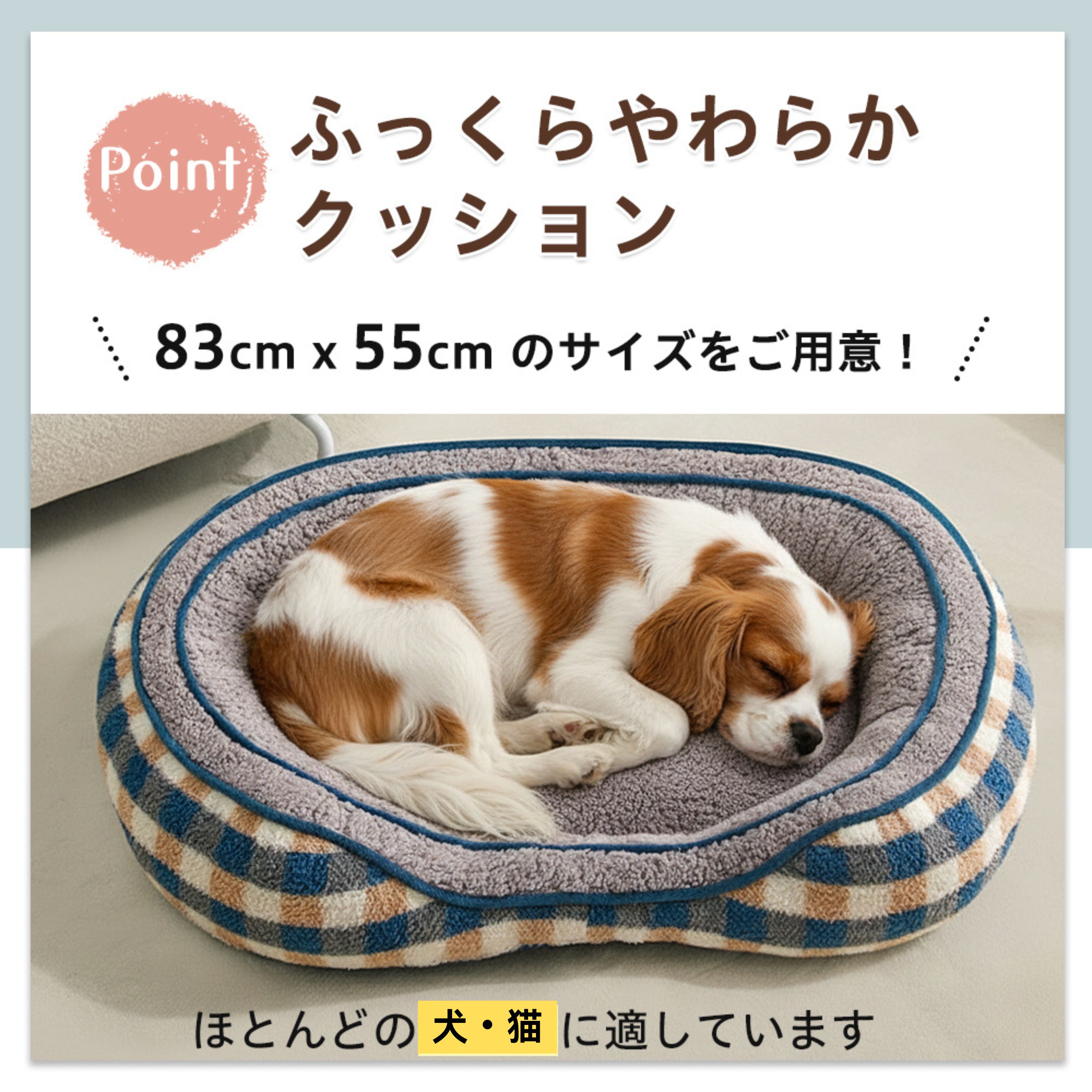 商品詳細 商品名 ふわふわ ブルーチェックペットベッド 適応ペット アメリカンワイヤーヘア猫 アメワイ 商品説明 ふんわり雲のような柔らかさで、愛犬・愛猫をやさしく包み込むペットベッドです。高弾力のPP綿をたっぷり詰め込み、長時間寝てもへたりにくく、快適な寝心地をキープします。 高めの周囲は首元を支えながら安心感を与え、低めの出入り口は小型犬や子猫でも出入りがスムーズ。 内側には肌触りの良い高密度フランネル素材を採用し、冬はあたたかく、夏もさらっと快適。底面には滑り止め付きでずれにくく、安全にご使用いただけます。 洗濯機で丸洗い可能なため、いつでも清潔を保てるのも嬉しいポイント。 一年を通して快適に使える、おしゃれで実用的なペット用ベッドです。 バリエーション ブルーチェック柄 仕様 素材:フランネル/コーデュロイ/PP綿/滑り止め付き底面 サイズ:約83×55×14cm ※手作業での採寸のため、1〜3cmの誤差が生じる場合があります。 重量:約1.5kg 用途 愛犬・愛猫の睡眠やお昼寝用ベッドとして リビングや寝室に置いてインテリアにもなるペットクッションとして 冬の防寒、夏の快適な居場所づくりに ソファやベッドの上に敷いて毛や汚れ防止マットとして 車内や旅行時のペット用リラックススペースとして お手入れ ・軽い汚れは濡れたタオルで優しく拭き取ってください。 ・全体を洗う場合は手洗いを推奨します。 ・中性洗剤を使用し、ぬるま湯でやさしく押し洗いしてください。 ・洗濯機を使用する場合は、ネットに入れて弱水流で洗ってください。 ・洗浄後は形を整え、風通しのよい日陰で自然乾燥してください。 ・漂白剤や高温乾燥機の使用は避けてください。生地や中綿を傷める原因となります。 注意事項 ・火気や高温の近くで使用しないでください。変形や火災の原因となります。 ・ペットの爪や噛みつきによって生地が破れる場合があります。 ・滑り止め付きでも、フローリング上で激しく動くとずれる可能性があります。 ・真空圧縮梱包でお届けします。開封後は軽くほぐし、数時間〜1日程度でふんわりと元の形に戻ります。 ・サイズには1〜3cmほどの個体差があります。あらかじめご了承ください。 生産国 中国 梱包や包装 本製品は環境に配慮した真空圧縮梱包でお届けいたします。 丸めた状態でコンパクトに圧縮して発送するため、輸送中のスペースを削減し、環境負荷を軽減しています。 開封時は以下の点にご注意ください: ・カッターやハサミを使用する際は、商品本体を傷つけないようご注意ください。 ・圧縮状態のため、開封直後は形が平らになっている場合があります。 ・軽く手でほぐし、空気を含ませるように整えていただくと、数時間〜1日ほどでふんわりと元の形に戻ります。 ・湿度の高い場所や直射日光の当たる場所での長期保管は避けてください。 キーワード ペットベッド 犬 猫 クッションベッド ドーム型ベッド ソファ型ベッド 丸型ふわふわベッド ペットクッション 犬用ベッド 猫用ベッド 柔らか素材 ふかふかクッション 快適クッション PP綿入り 高反発ベッド 通気性良好 保温ベッド あったか素材 冷感素材 四季対応 冬夏兼用 丸洗い可能 洗濯機対応 清潔簡単 カバー取り外しOK 抗菌消臭設計 滑り止め付き 安定構造 軽量設計 コンパクト収納 折りたたみベッド 持ち運び便利 ペットキャリー用ベッド ケージ用マット 室内飼い用ペットベッド ペットルーム用 ペットリビング用 ペット寝具 小型犬 中型犬 猫 大型猫 チワワ トイプードル ポメラニアン コーギー シーズー マンチカン スコティッシュ 柴犬 ノルウェージャン 子犬 子猫 老犬 老猫 多頭飼い対応 ペット癒しグッズ ペットリラックスベッド 安眠サポート 快眠サポート ペット安心スペース ペットストレス軽減 室内インテリア ナチュラルデザイン 北欧風デザイン シンプルモダン ファブリック調 コーデュロイ素材 フランネル生地 ベロア素材 リネン素材 ボア素材 カラーバリエーション グレー ベージュ ピンク ブルー ブラウン アイボリー ナチュラルトーン おしゃれ空間 ペット写真映え ペットルームインテリア ペット生活雑貨 ペットおしゃれグッズ フローリング保護 ソファ保護マット 衛生的ベッド ペット毛対策 消臭加工 丈夫な構造 長持ち素材 快適触感 ペットハウス ペットマット 防滑ベッド 車内ベッド 旅行用ポータブルベッド おでかけ便利 持ち運びしやすい ペットケア用品 ペットリラックスアイテム プレゼント用ギフト 冬の防寒対策 夏の快適寝具 通年使えるペットベッド