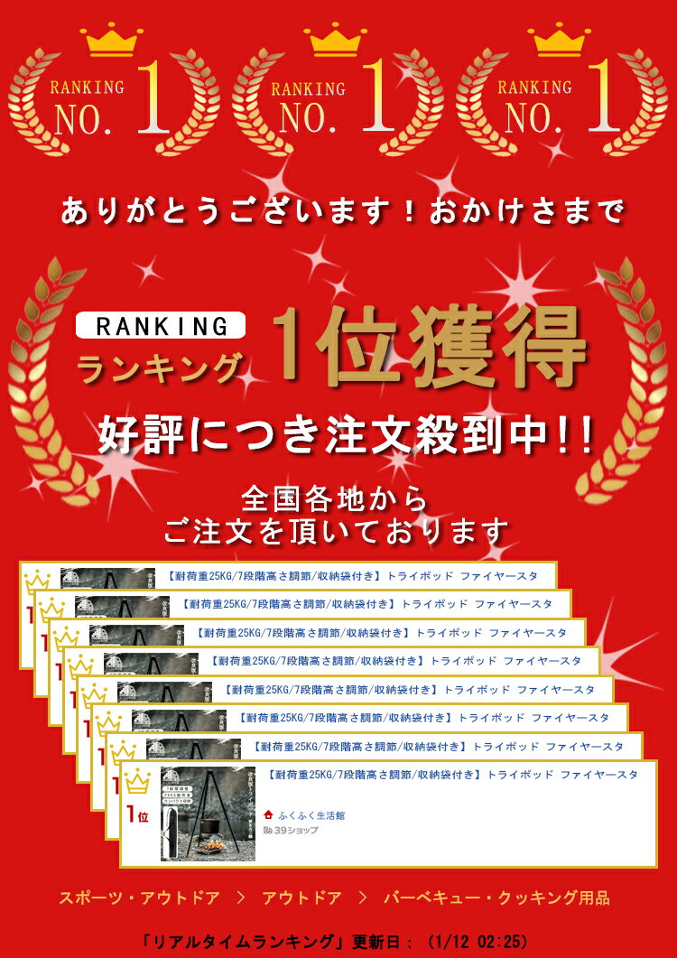 楽天1位!! トライポッド ファイヤースタンド 超軽量 バーベキュー アウトドア 焚火スタンド 耐荷重25kg 焚き火用 三脚 7段階高さ調節 収納袋付き ダッチオーブン キャンプ 持ち運び 便利 コンパクト ステンレス アルミ 調理器具 取り外し可 防災グッズ