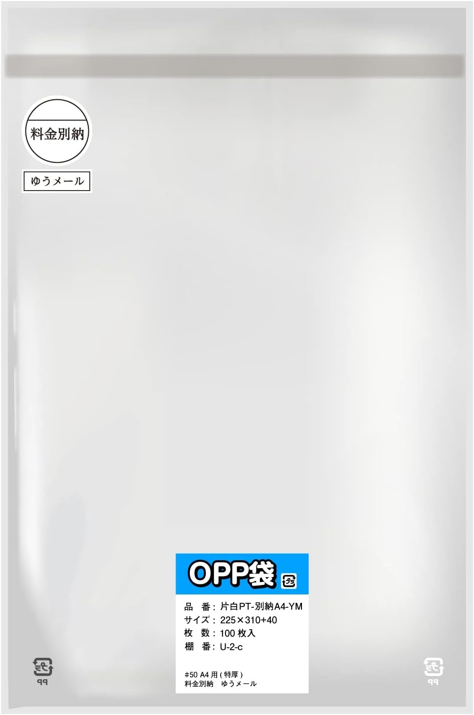 材質:OPP サイズ:厚さ0.03mmx幅75mmx長さ130mm +テープ部分40mm、入数:100枚入x1袋または1000枚(100枚入袋x10セット)・日本製。透明度が高く光沢があるので高級感があり、商品の中身をきれいに見せることができます。ワンタッチで封ができる大変便利なOPP袋です。OPP袋は別名としてクリアパック・クリスタルパック・透明袋・OP袋・OPパック等の呼称があります。テープ部分は帯電防止処理済です。テープを剥がした際、静電気でテープが手に付着することがありませんので封入作業のストレスを大きく軽減することができます。アルカナカードの保存、保護、収納に対応。アクセサリーほか各種小物の包装等、ネットオークションやフリマサイトでの発送用のまとめ買い他、ラッピング資材としても多数ご利用いただいております。商品名 T7.5-13 サイズ(mm) 幅75x長さ130 +テープ部分40 厚さ(mm) 0.03(標準的な厚さ) 素材 OPP 特長 テープ付・剥がしたテープが手に付かない帯電防止加工済 用途 アルカナカードサイズ対応、その他カード用スリーブ・アクセサリー・小物・雑貨等 サンプルご請求 可能 穴開け加工 可能(OPP袋空気穴加工オプションのページをご確認下さい) 同じサイズの厚さの異なる商品 - 他のサイズ テープ付きOPP袋サイズ一覧 注意事項 OPP袋の性質をご説明しておりますのでご注文前にご確認下さい。