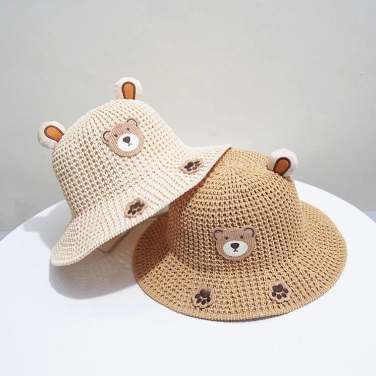 ダンスや発表会の服装としても、普段使いも♪ 超キュートなクマ麦わら帽子◎ UV対策(UVカット)グッズ、日差しからお子様を守るコスプレや発表会など活躍できる可愛いデザイン。 通気性に優れたペーパー素材で、蒸れないから、夏の日よけ対策としても◎ チュチュワンピースやドレスを合わせるとまるでプリンセス! 夏のビーチや海の紫外線対策にかかせないアイテムです サイズ 2-5歳 5-9歳 サイズについての説明 2-5歳 47-52cm 5-9歳 52-54cm ※サイズは平置き実寸になります。サイズ表の実寸法は商品によって1-3cm程度の誤差がある場合がございます 素材 ポリエステル 色 アイボリー ベージュ ピンク イエロー 備考 ●サイズ詳細等の測り方はスタッフ間で統一、徹底はしておりますが、実寸は商品によって若干の誤差(1cm〜3cm )がある場合がございますので、予めご了承ください。 ●商品の色は、撮影時の光や、お客様のモニターの色具合などにより、実際の商品と異なる場合がございます。あらかじめ、ご了承ください。 ●製品によっては、生地の特性上、洗濯時に縮む場合がございますので洗濯時はご注意下さいませ。 ▼色味の強い製品によっては他の衣類などに色移りする場合もございますので、速やかに(脱水、乾燥等)するようにお願いいたします。 ▼生地によっては摩擦や汗、雨などで濡れた時は、他の製品に移染する恐れがございますので、着用の際はご注意下さい。 ▼生地の特性上、やや匂いが強く感じられるものもございます。数日のご使用や陰干しなどで気になる匂いはほとんど感じられなくなります。