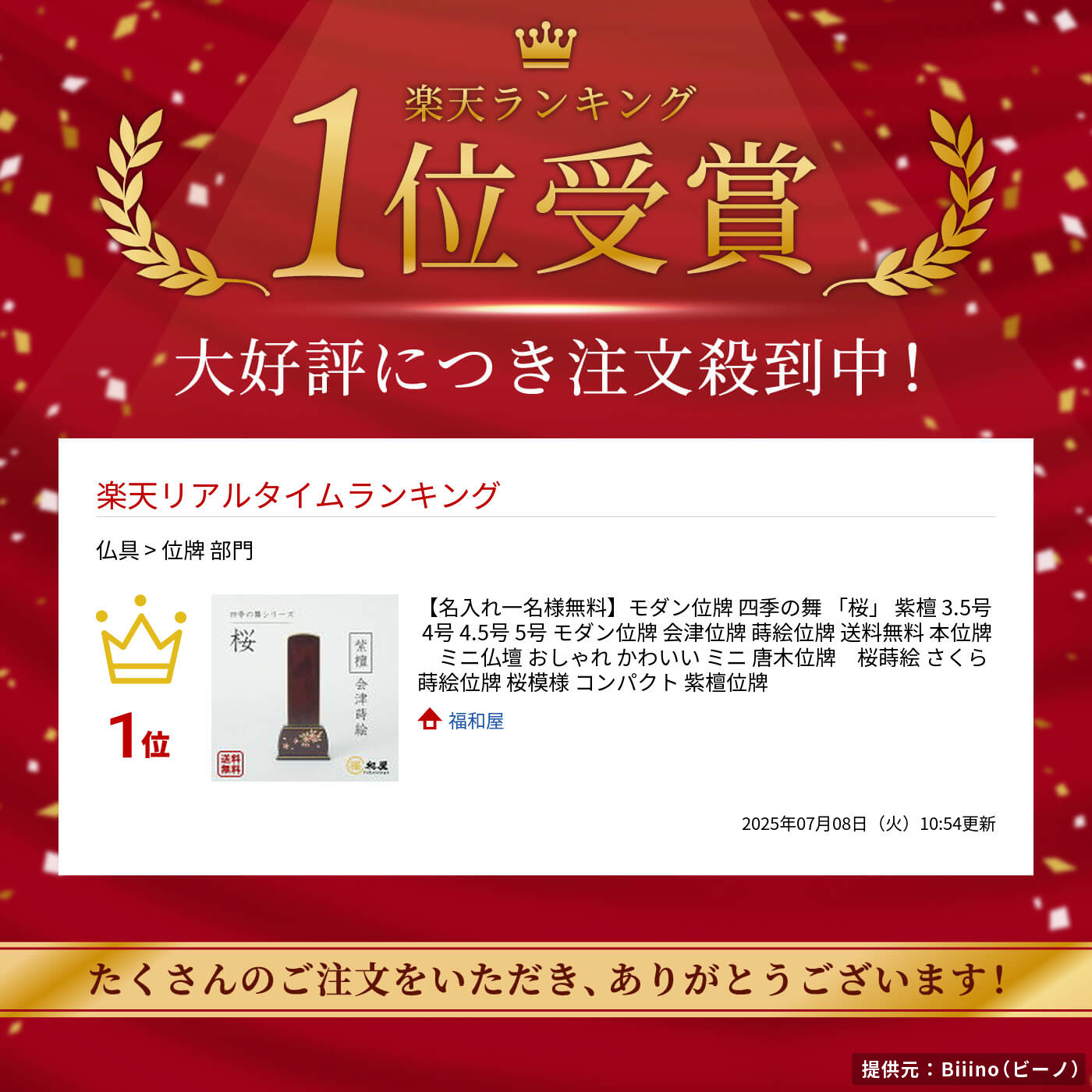 【会津蒔絵・四季の蒔絵】モダン位牌 四季の花の舞う 紫檀 黒檀 3.5号 4号 4.5号 5号 桜 秋桜 水仙 朝顔 宙 モダン位牌 会津位牌 蒔絵位牌 本位牌 ミニ仏壇 おしゃれ かわいい ミニ 唐木位牌 桜蒔絵 さくら 蒔絵位牌 桜模様 コンパクト 四季の舞